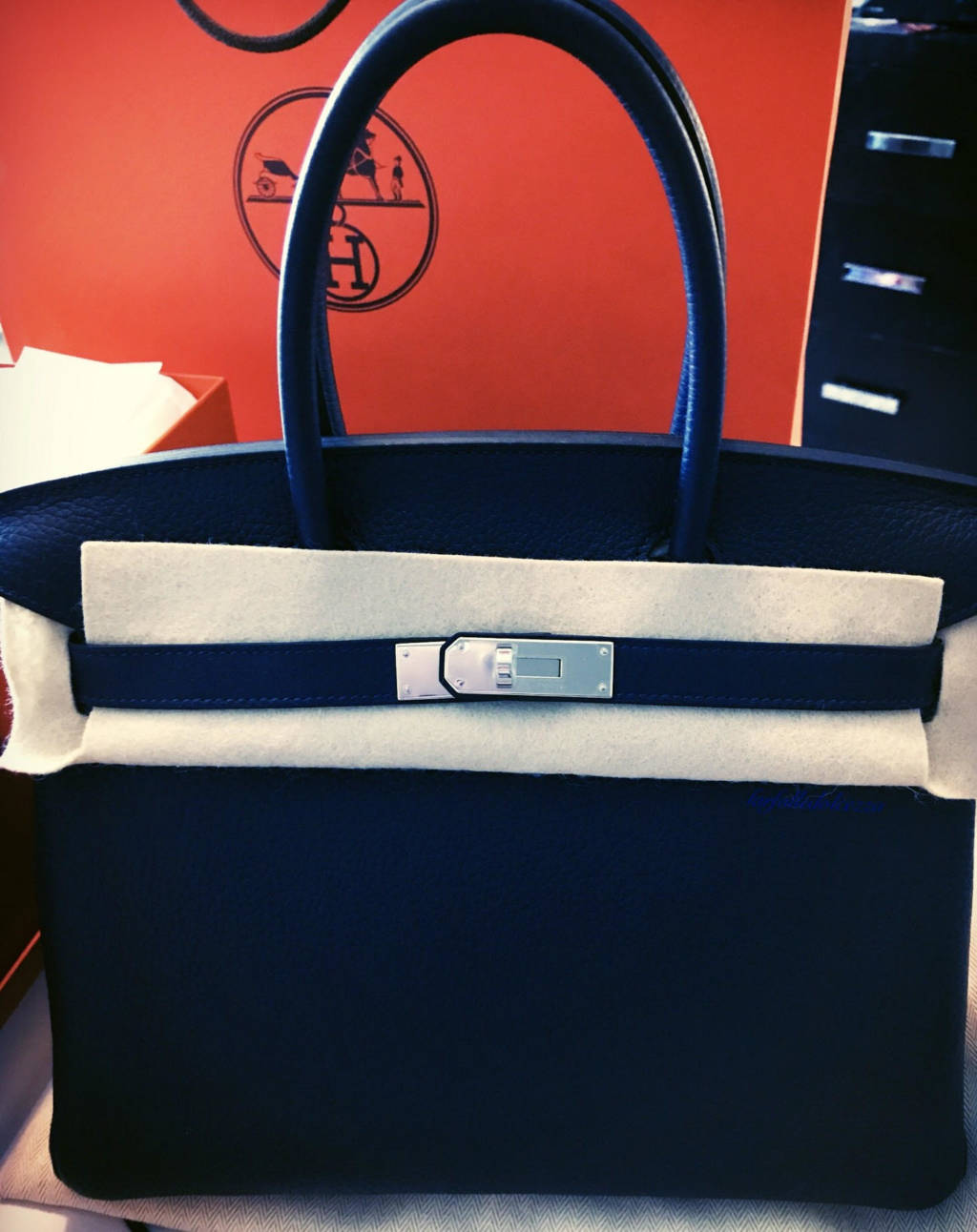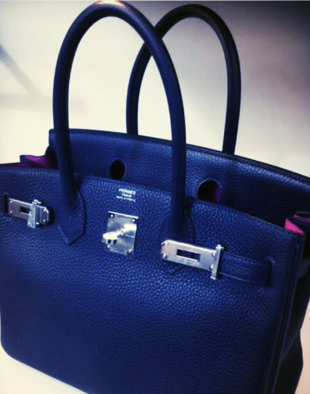 I have always preferred swift leather and this bag is in taurillon clemence. It is a solid and thick leather that smells absolutely divine. It has texture and yet feels so incredibly soft. The blue nuit and rose pourpre are complimentary colors and look perfect with the palladium hardware.