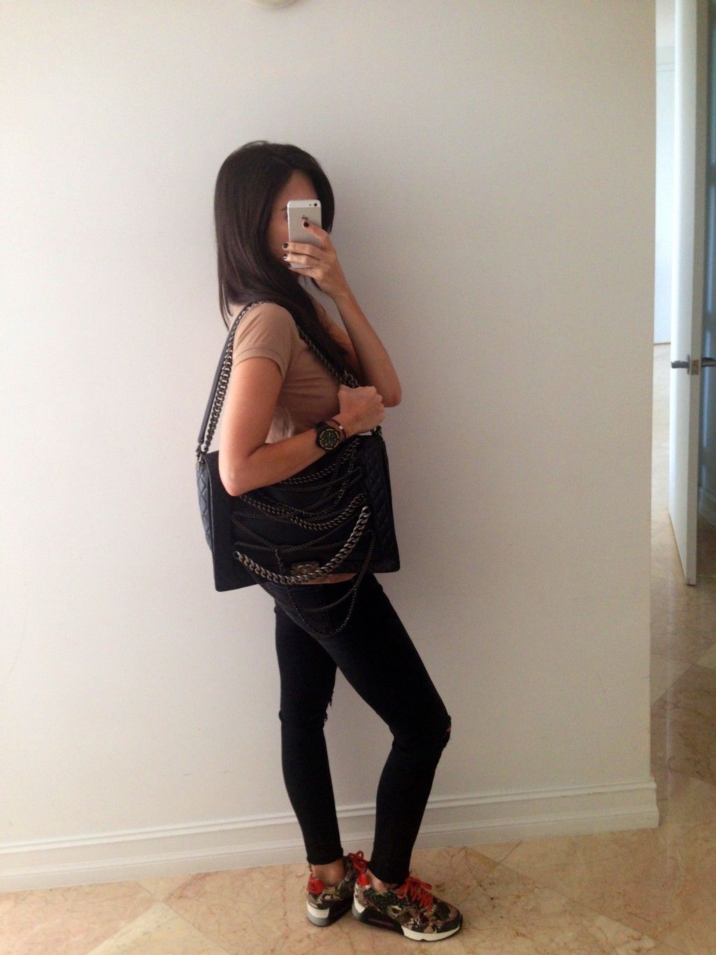 These LV high tops are beyond! I just love them. I appreciate the styling tips, they look great how you’ve paired them with jeans and a casual top. Your chain Chanel bag is very cool as well.