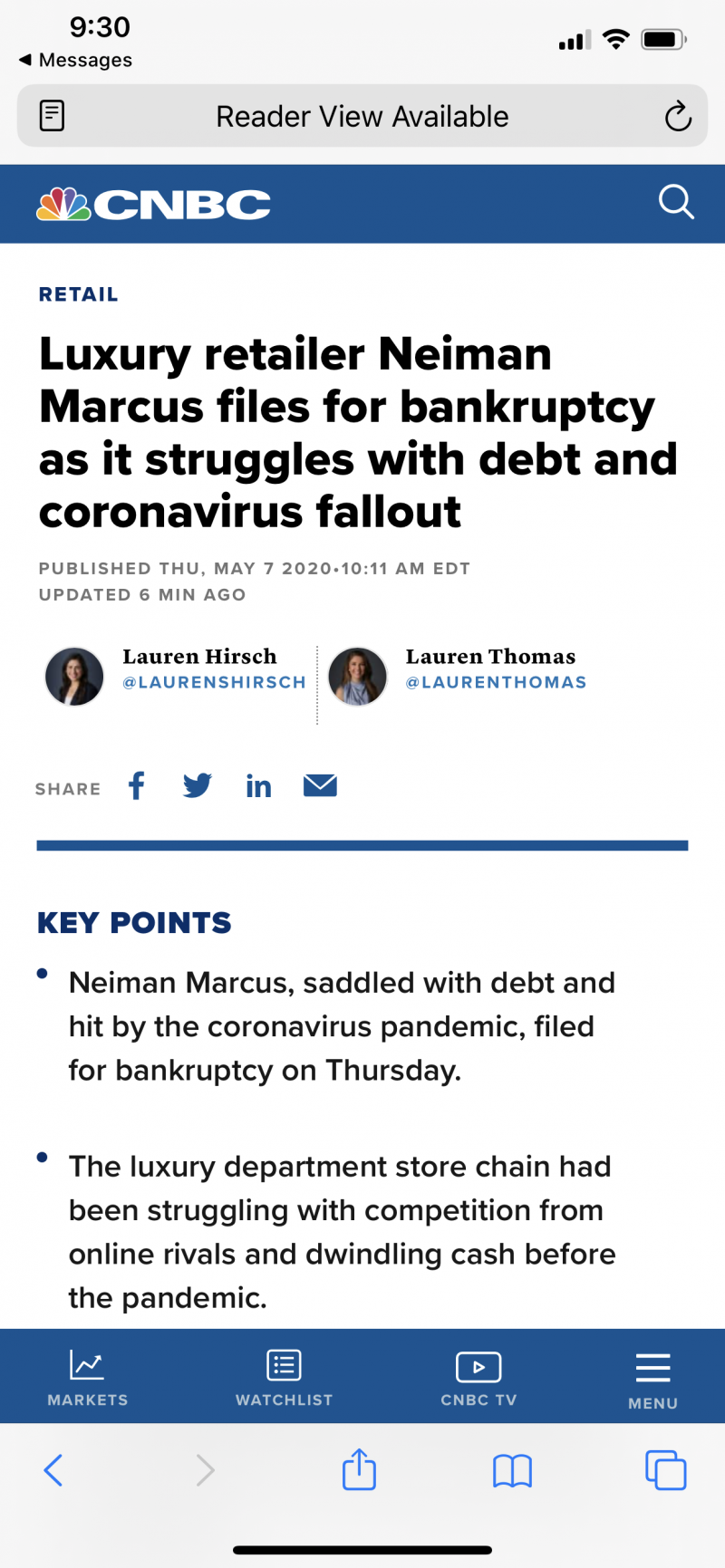 Having all Neiman Marcus stores temporarily closed due to coronavirus has brought in minimal revenue quite possibly tipping my favorite retailer over the edge.