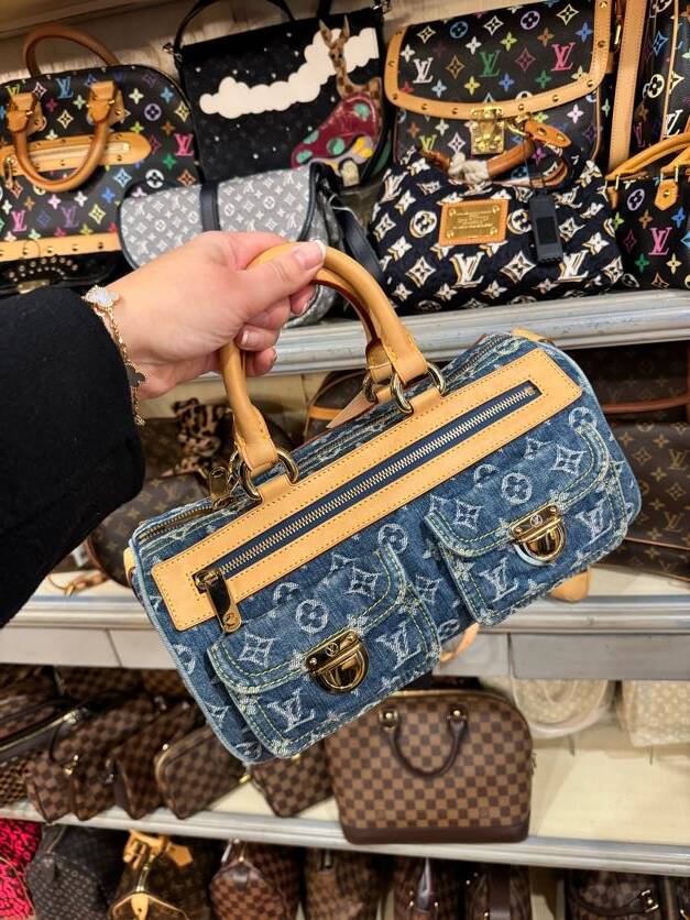 Next, I walked straight down the street and saw the storefront with a big “Goyard” sign and shelves in the window, and a fun vibe. I entered and started looking at the selection of Chanel, Louis Vuitton, and Hermes bags, and I must say it was very cool. There was a wide range of options including some smaller leather goods and a lot of Louis Vuitton pieces.