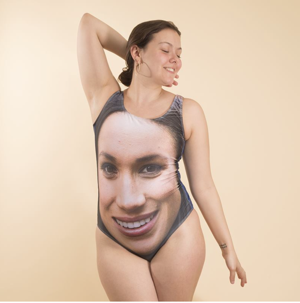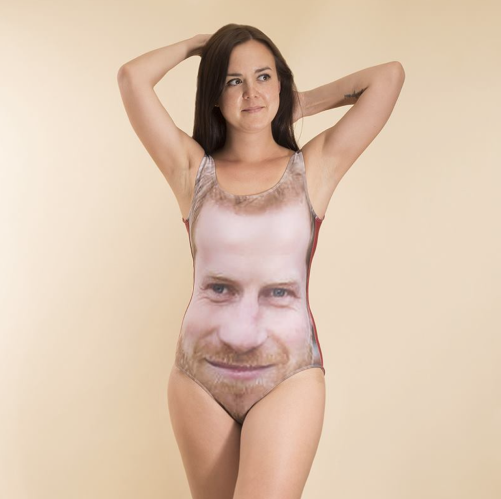 With the royal wedding of Prince Harry and Meghan Markle just days away, fans can buy their fair share of memorabilia – some official, some not – ranging from mugs to tea towels, coins, china and other refined goods. . . . but these have to take the castle’s cake: swim suits with Harry and Meghan’s faces! No need for a fascinator if your sporting one of these. https://www.bagsoflove.co.uk/harry-meghan-swimsuits