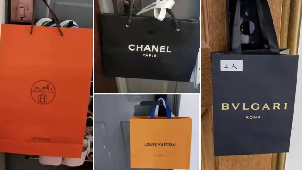 According to the latest news reports from China, some residents under COVID lockdown, anxious to display their wealth and good taste, are putting these designer shopping bags on display in a most unusual place. On the outside of home door knobs. But they’re not just for decoration. These bags hold the COVID test kits for pickup and collectsion by health workers.