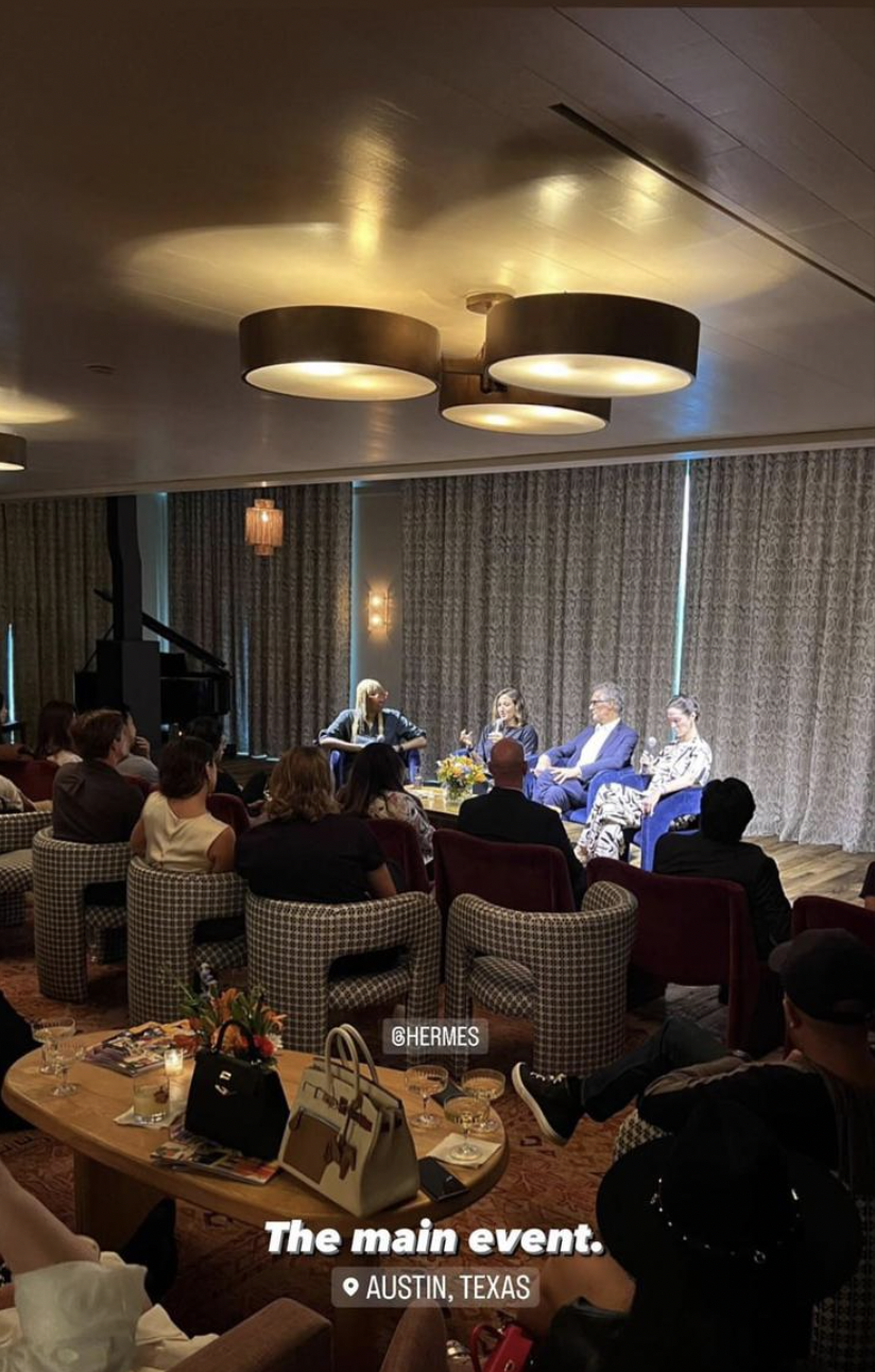 “It was a blast! Yummy bites, lots of drinks flowing and H lovers connecting. The editor in chief of Le Monde d’ Hermes was in town and hosted a talk on “The Art of Astonishment” with two incredible local artists and the Associate Curator from the Blanton Art Museum. I think it’s fair to say all who attended were certainly astonished in all the best ways only Hermes can astonish us.” – @melany.af