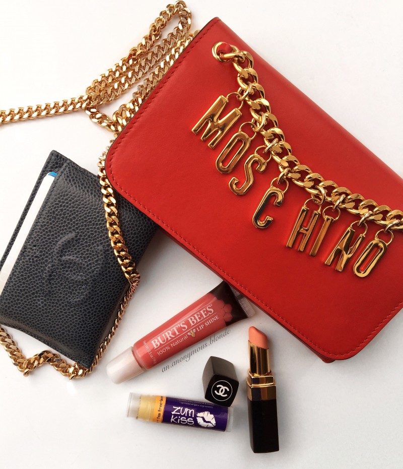 Here’s a look at what I can fit in my Moschino WOC. Not pictured: Car keys and iPhone ❤️?