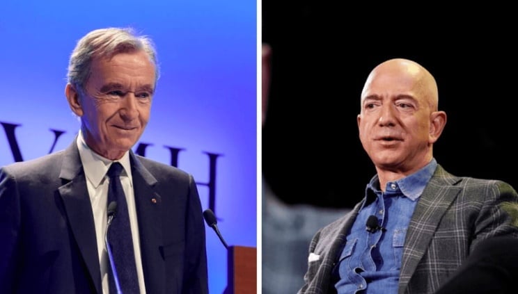 Bernard Arnault of LVMH, Jeff Bezos of Amazon, Image Credit: Sambadenglish.com