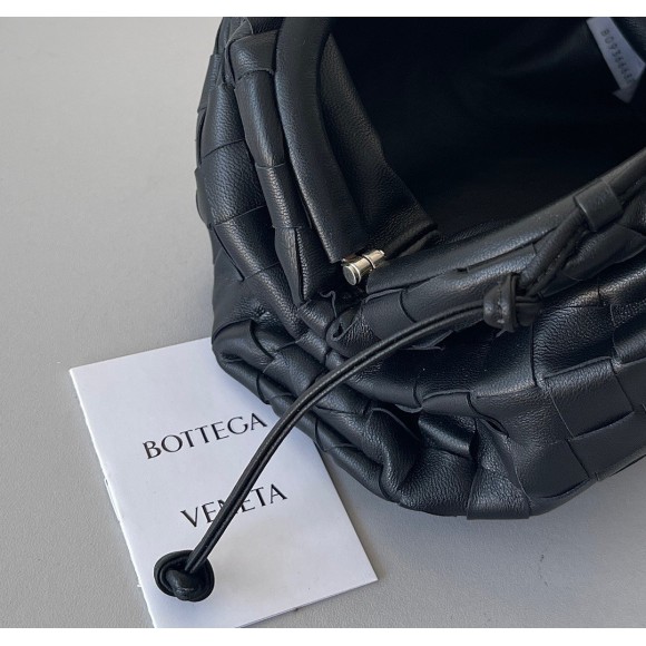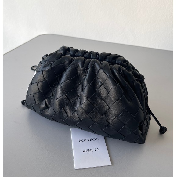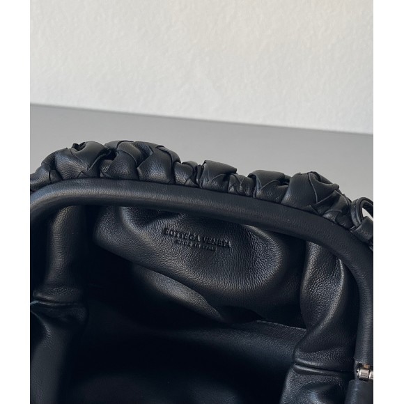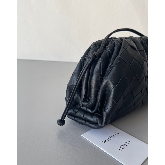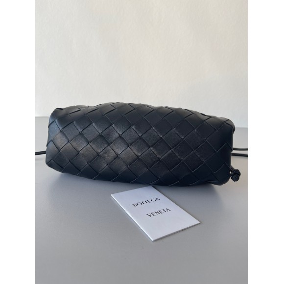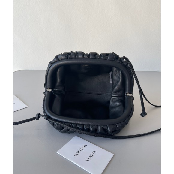Bottega Veneta Mini Pouch with Strap in Black Intrecciato Lambskin