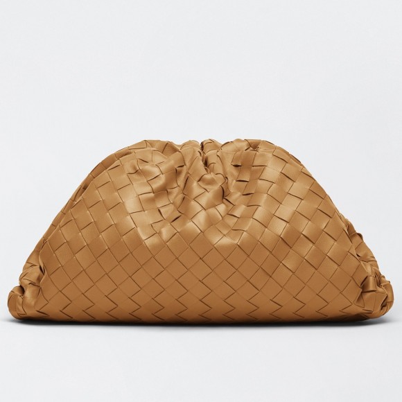 Bottega Veneta Large Pouch Clutch Bag In Caramel Intrecciato Lambskin
