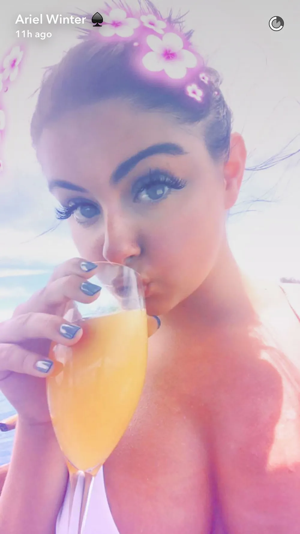 The 18-year-old actress shared a series of photos on Instagram and Snapchat of herself and pals, including Modern Family costar Nolan Gould, relaxing by the water. In one shot, Winter and her friend Jessie Berg stuck their bikini-clad backsides toward the camera as they looked out at the ocean while aboard a boat. “Your favorite wives in paradise,” Winter captioned the post.