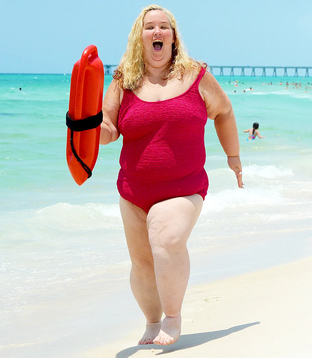 Slow run! Mama June Shannon showcased her impressive weight loss in a red Baywatch-inspired one-piece in Panama City, Florida, on Friday, July 10.