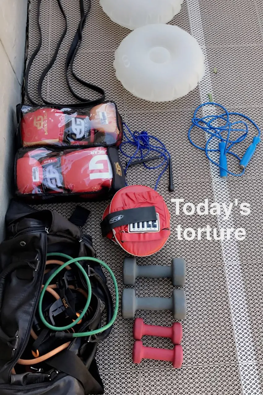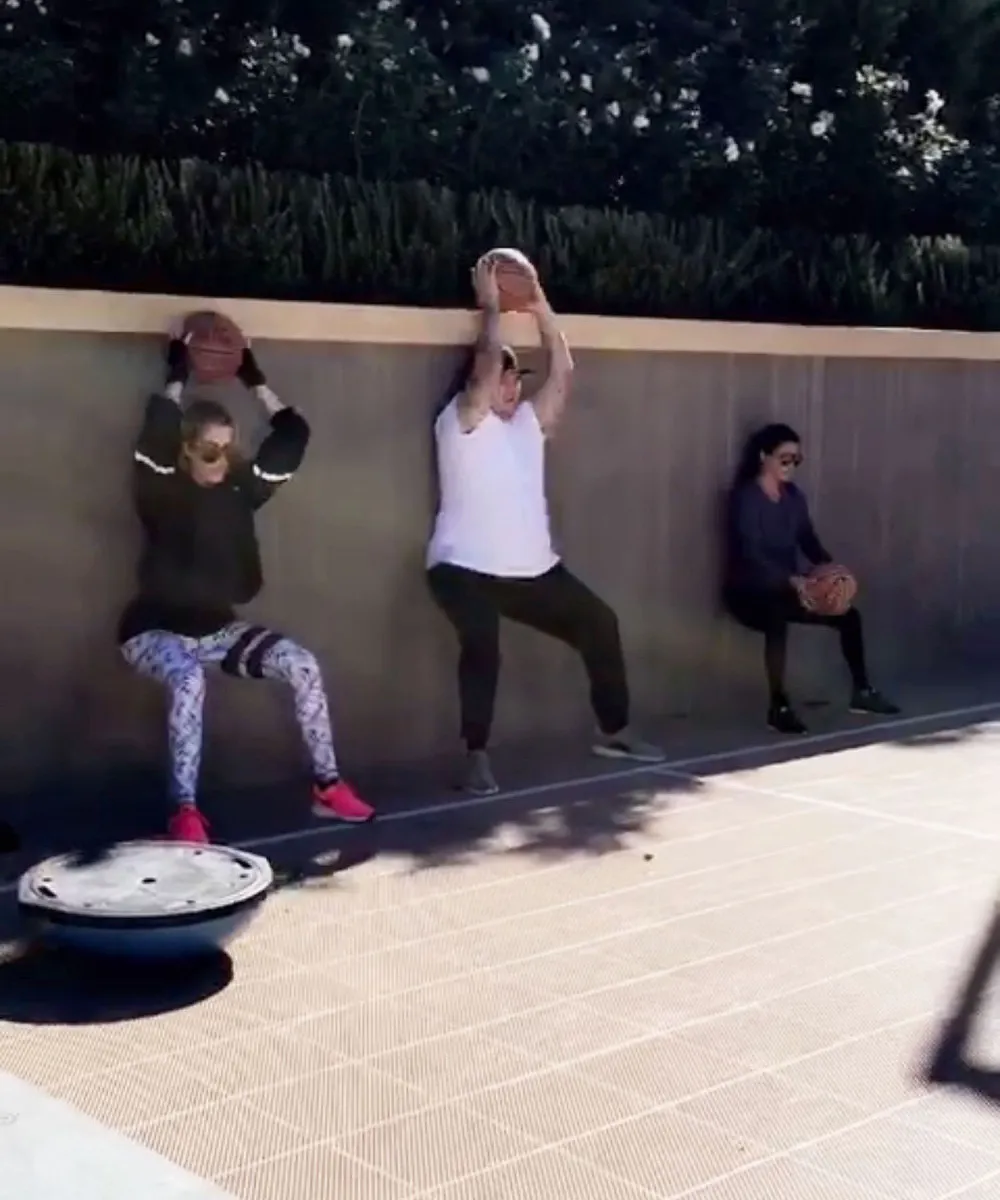 “Today’s torture,” Kourtney, 37, captioned one post, while Khloé, 32, added, “Back at it.”