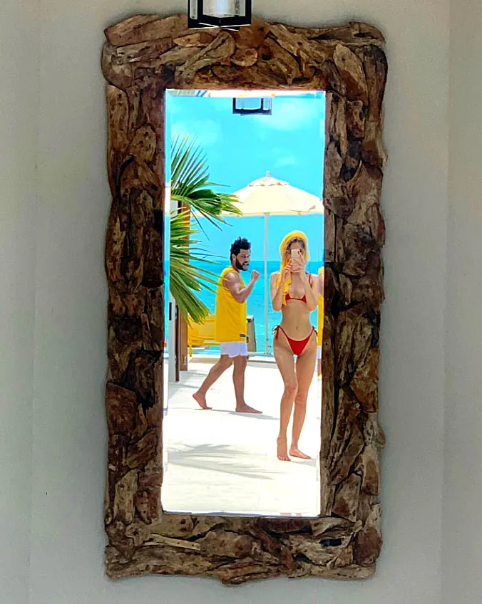 The model made use of an outdoor mirror while on a tropical getaway with her love, The Weeknd. On April 13, 2019, Hadid snapped a photo of her incredibly toned body in a tiny bikini while the singer walked through the frame. “MIA on purpose,” she captioned the pic, as a reference to skipping Coachella 2019. As a source told Us of the boxing devotee in November 2018, “Bella is very comfortable in her own skin and is very confident.”