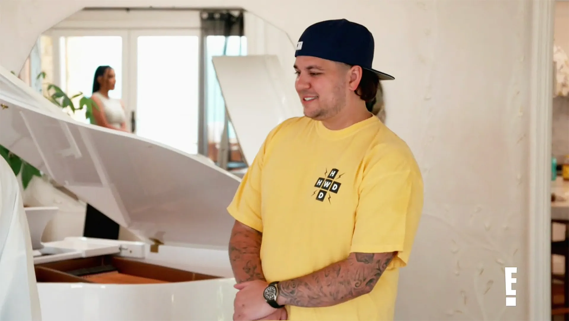 On the April 1 episode, Kardashian wore a yellow T-shirt from his Halfway Dead clothing line, as well as some shorts that showed off his slimmed-down body.