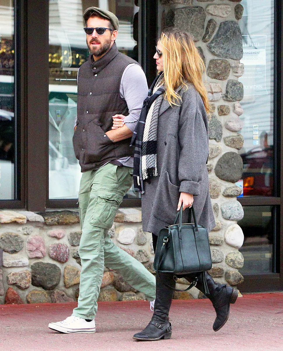 Future dad Reynolds, 37, guided his pregnant wife along the street for their walk as she hooked her arm through his. The Bedford, N.Y. residents were staying in the quaint and scenic upstate New York town for a romantic getaway, a source told Luxury Handbag Shopping.