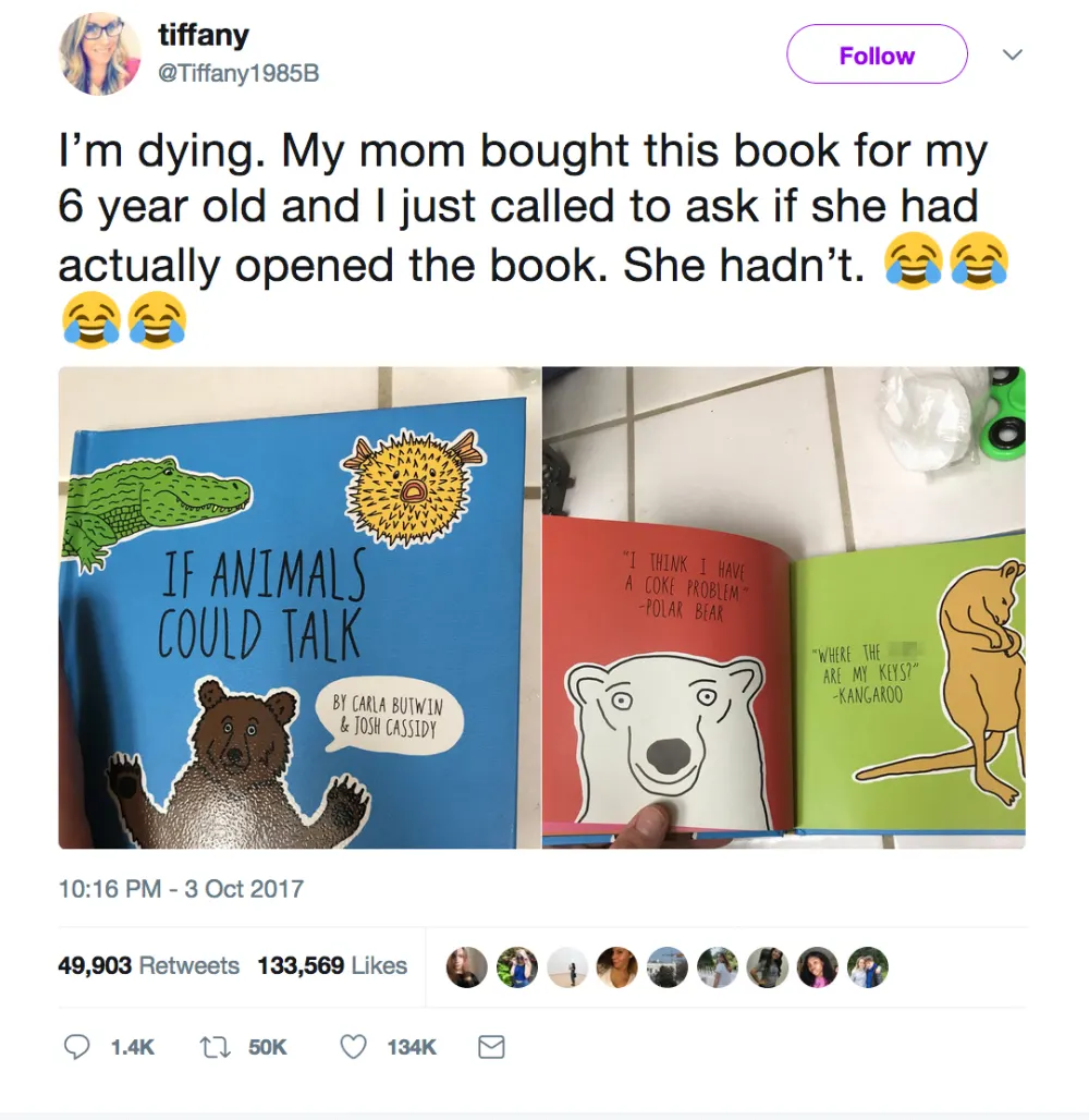Don’t judge a book by its cover. That’s the lesson Geri Hoeft learned when she picked up a copy of If Animals Could Talk for her 6-year-old granddaughter Emmersyn at Barnes and Noble. You see, despite the kid-friendly title, the story is actually intended for a more mature audience — something Hoeft would have quickly discovered had she turned to page one.