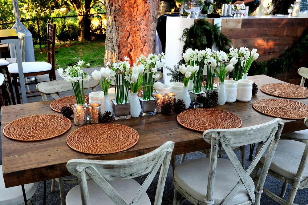 The star’s mom, who gave a “heartfelt toast,” went all out for the special occasion. The invitations had a “classic Stork” theme, while the party venue was decorated with winter white bouquets and a Christmas tree, plus rustic table settings with rattan place mats, shed deer antlers, pinecones and white gourds.