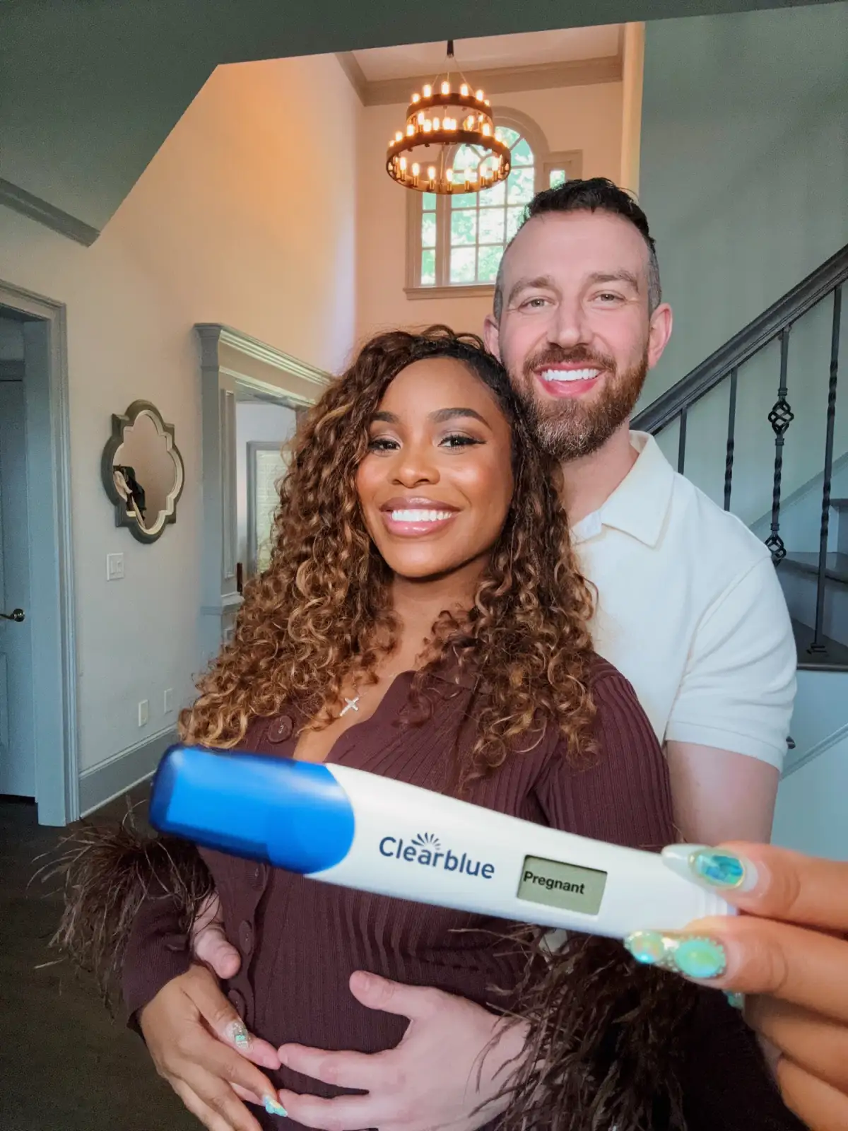 “We knew, okay, this is the day that we’re going to do the test. Of course, we’re going in for a blood test later that day, but we couldn’t wait any longer.” he continued. “We did the classic test and we both went into the bathroom to look at the Clearblue test and it was face down. We flipped it over. We saw the word pregnant, and that was just a huge moment to actually see the word pregnant on a test.”