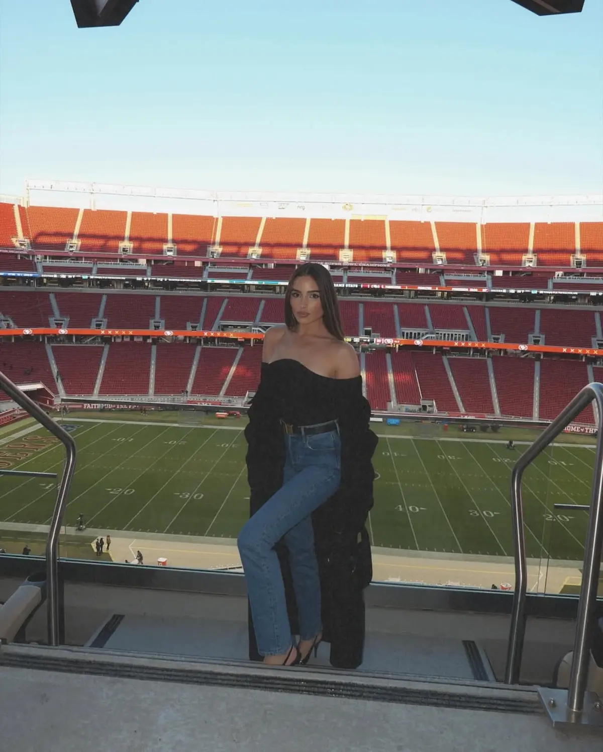 The San Francisco 49ers’ newest and littlest fan arrived at Levi’s Stadium when Olivia Culpo and Christian McCaffrey brought their baby girl to the Sunday, September 21, home game.