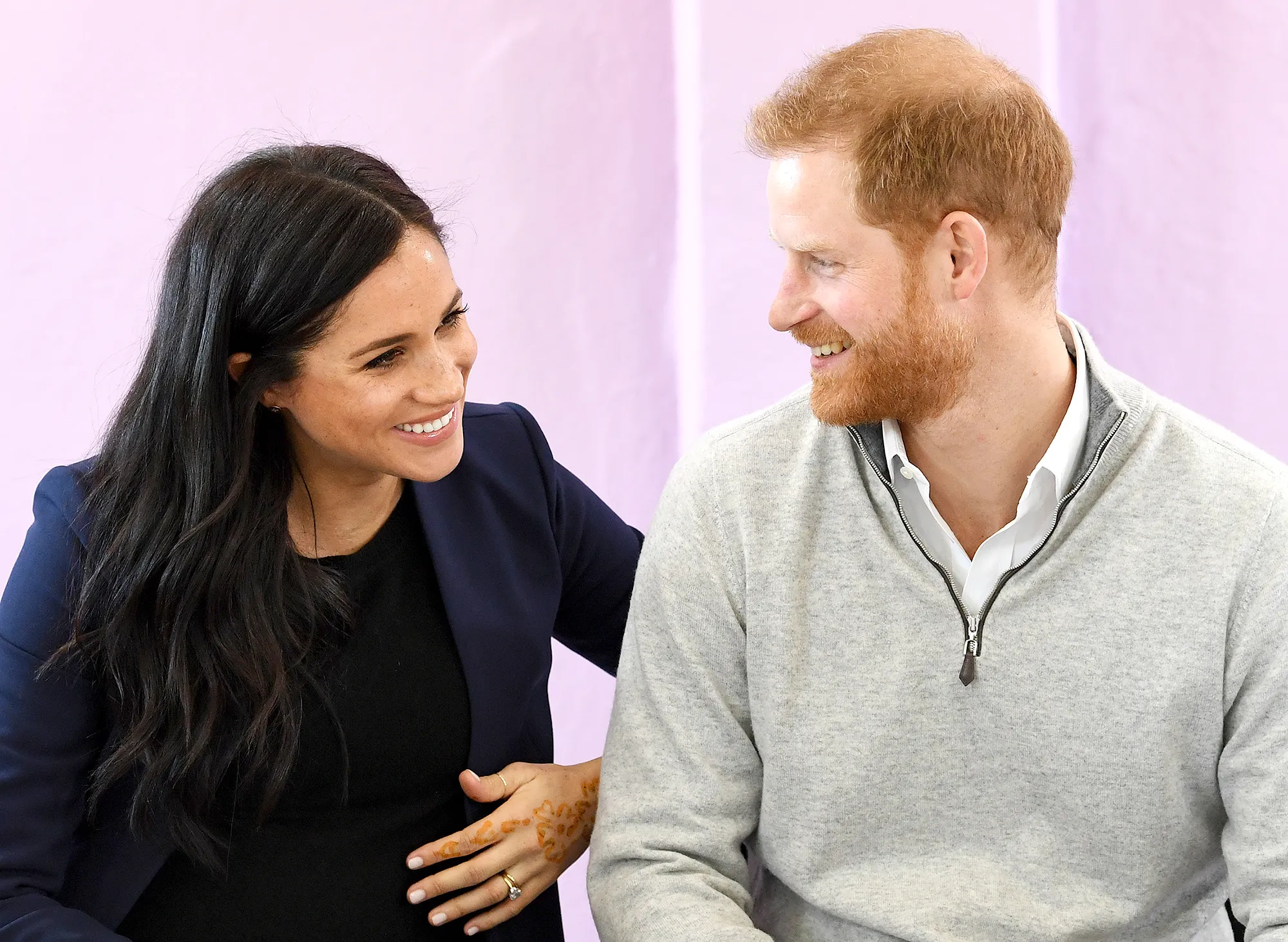 Harry and Meghan spent day two of their royal trip to the North African country at the education charity in Asni Town, Atlas Mountains, meeting with teachers and students. During the outing, the California native showed off her baby bump in a black top paired with a navy blue blazer, and traded in her signature high heels for a pair of flats. Harry, meanwhile, paired gray slacks with a sweater and collared shirt.