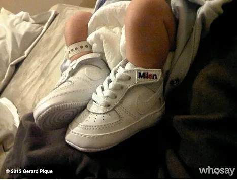 Little baby trainers! Shakira‘s boyfriend Gerard Pique shared the first picture of their son Milan via WhoSay Wednesday, Jan. 23 — but only of his feet.