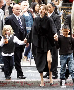 After catching the animated sequel, Little Shiloh, 4 and brother Maddox, 9, held onto their mom Jolie's hands outside the the theater; Zahara, 6, and brother Pax, 7, walked out with their dad Pitt, 47.