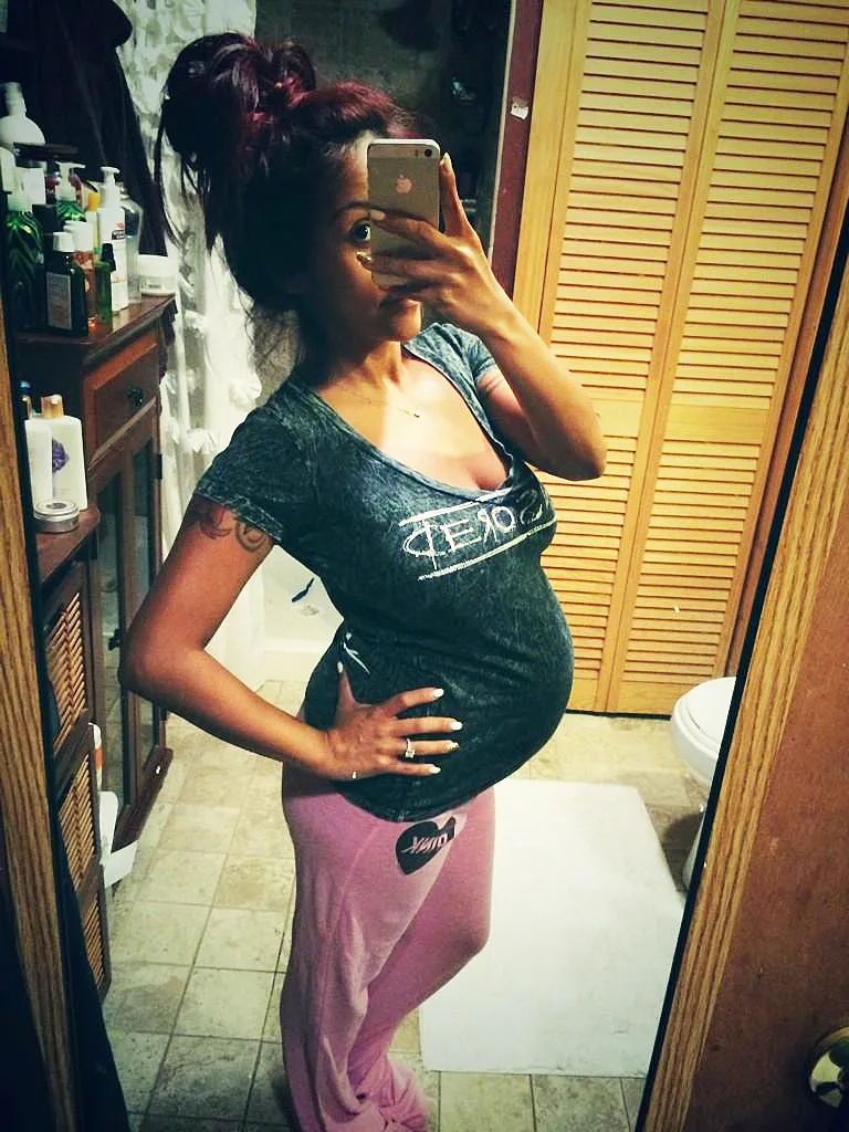 “8 months & baby feels lower,” the Jersey Shore alum, 26, captioned her mirror selfie of her growing bump in sweats and a T-shirt.