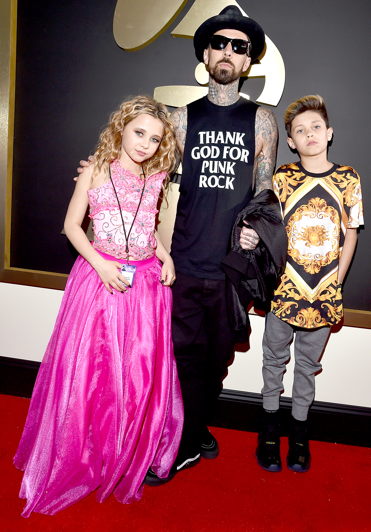 Travis Barker made it a family affair on the 2016 Grammy Awards red carpet!