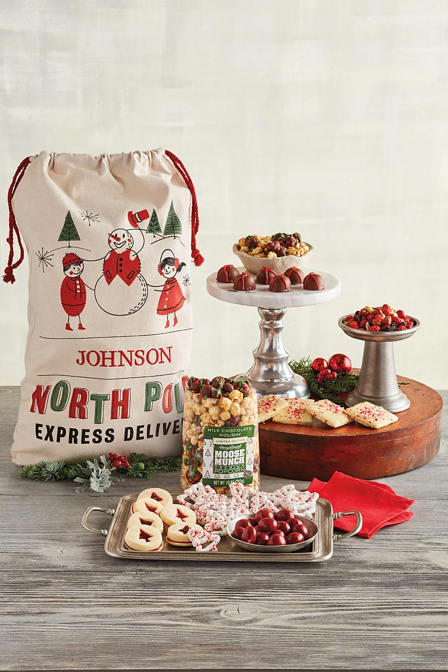 Start by knocking out some stocking stuffers. Add Justin’s Peanut Butter Cups to their gift bags or even design a personalized tote of treats from Harry & David. The Santa’s Sack features shortbread cookies shaped like trees, milk chocolate popcorn and yogurt-covered pretzels, among other goodies. Add the name of the little one in your life on the “North Pole Express Delivery” bag before buying.