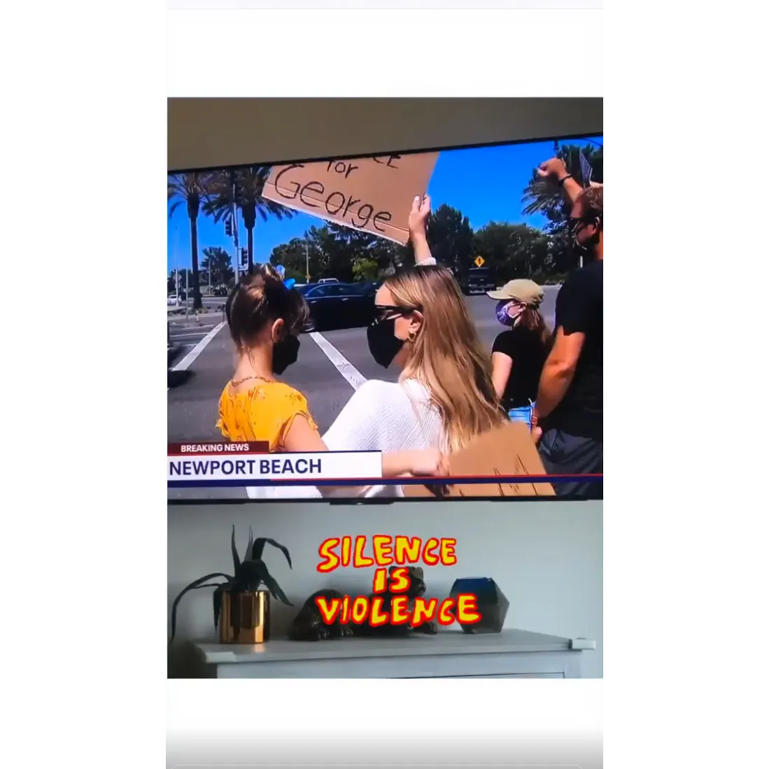 The Bachelor in Paradise alum, 30, posted an Instagram photo of herself and her youngest daughter, Charlie, 6, wearing masks and holding cardboard signs reading, “Black Lives Matter.” The Now Accepting Roses author went on to share footage on her Instagram Story of Charlie and her older sister, Kinsley, 8, making their signs. The former reality star also snapped a shot of her family on the news, writing, “Silence is violence.”