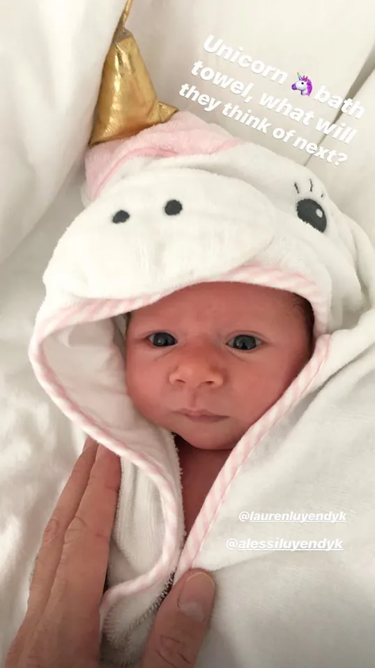 Burnham added a post of her own: “She is sweet, calm and @ariejr and I could not be more in love with her.”