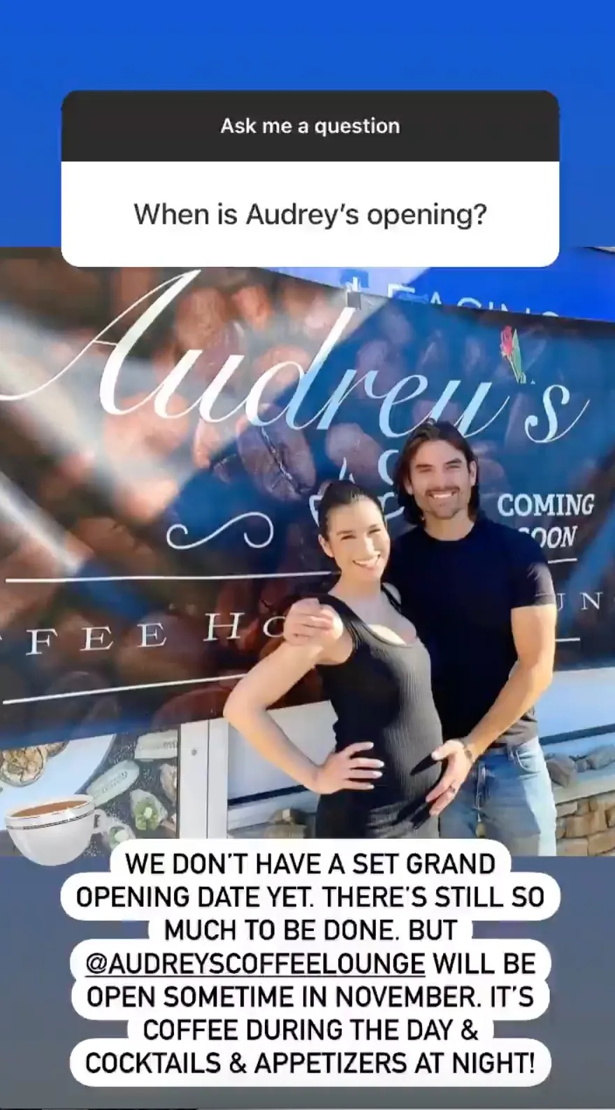 The Audrey’s Coffee House and Lounge owners welcomed their son, Dawson, in January 2022, with the new dad gushing via Instagram: ““Baby Dawson is here and healthy! Ashley is recovering and doing well! It really couldn’t have gone much smoother. He’s so sweet and beautiful and has been sleeping all day. Unlike his Mom and Dad who are on no sleep right now but it’s totally worth it!”