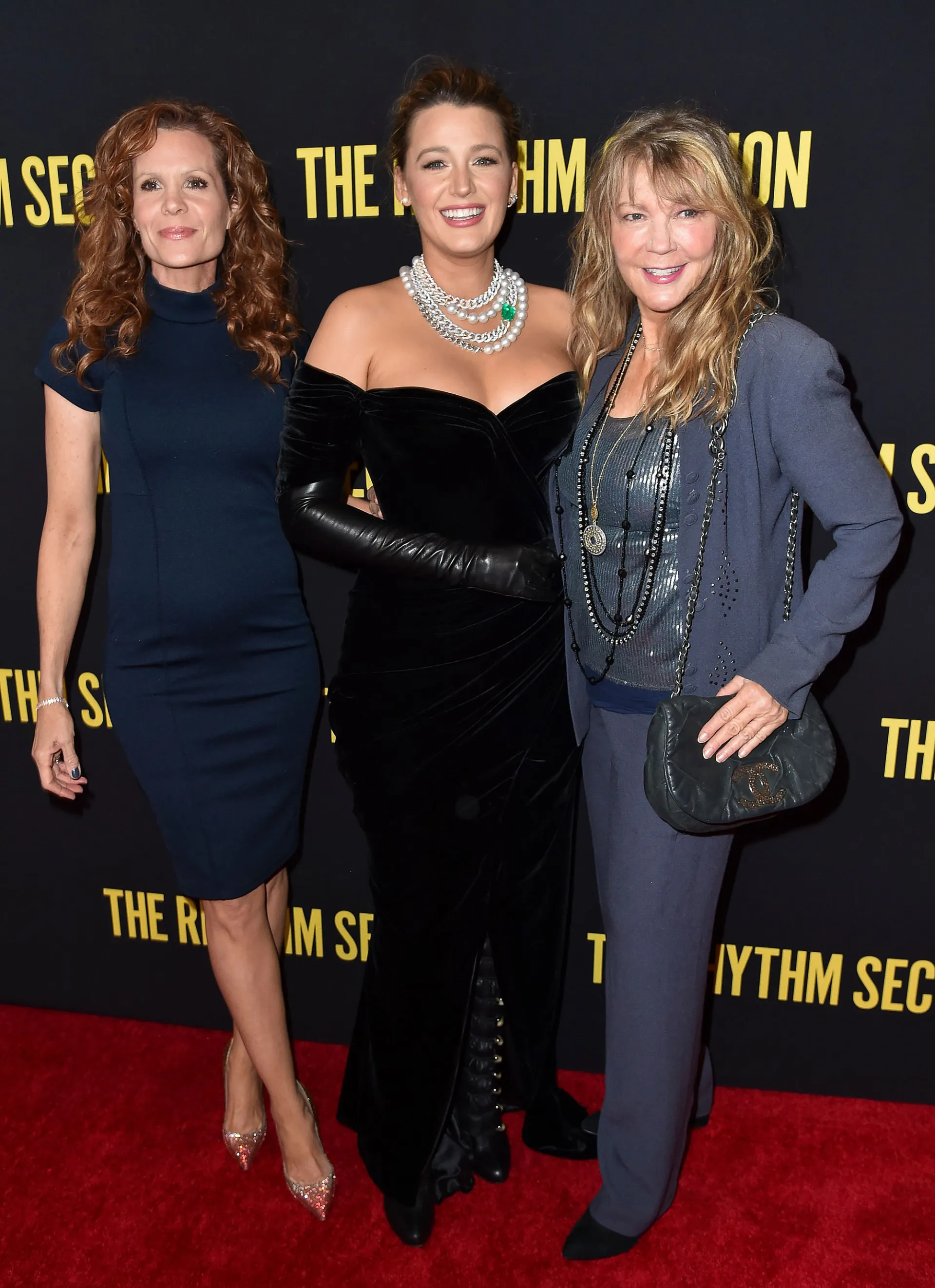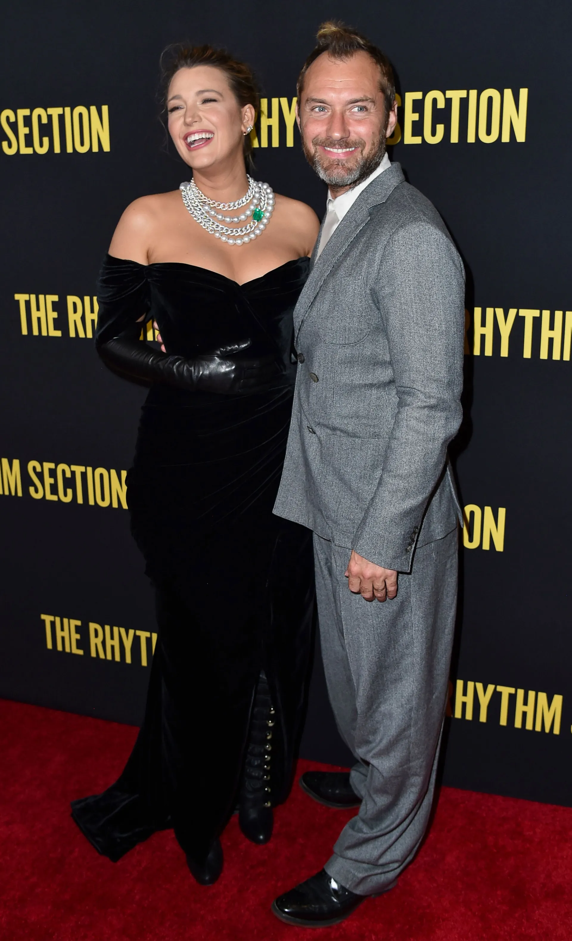 The actress, 32, posed for pictures in a black strapless gown, matching leather gloves and high boots at the Brooklyn premiere of her movie The Rhythm Section. The Gossip Girl alum accessorized with an updo and chunky silver necklaces.