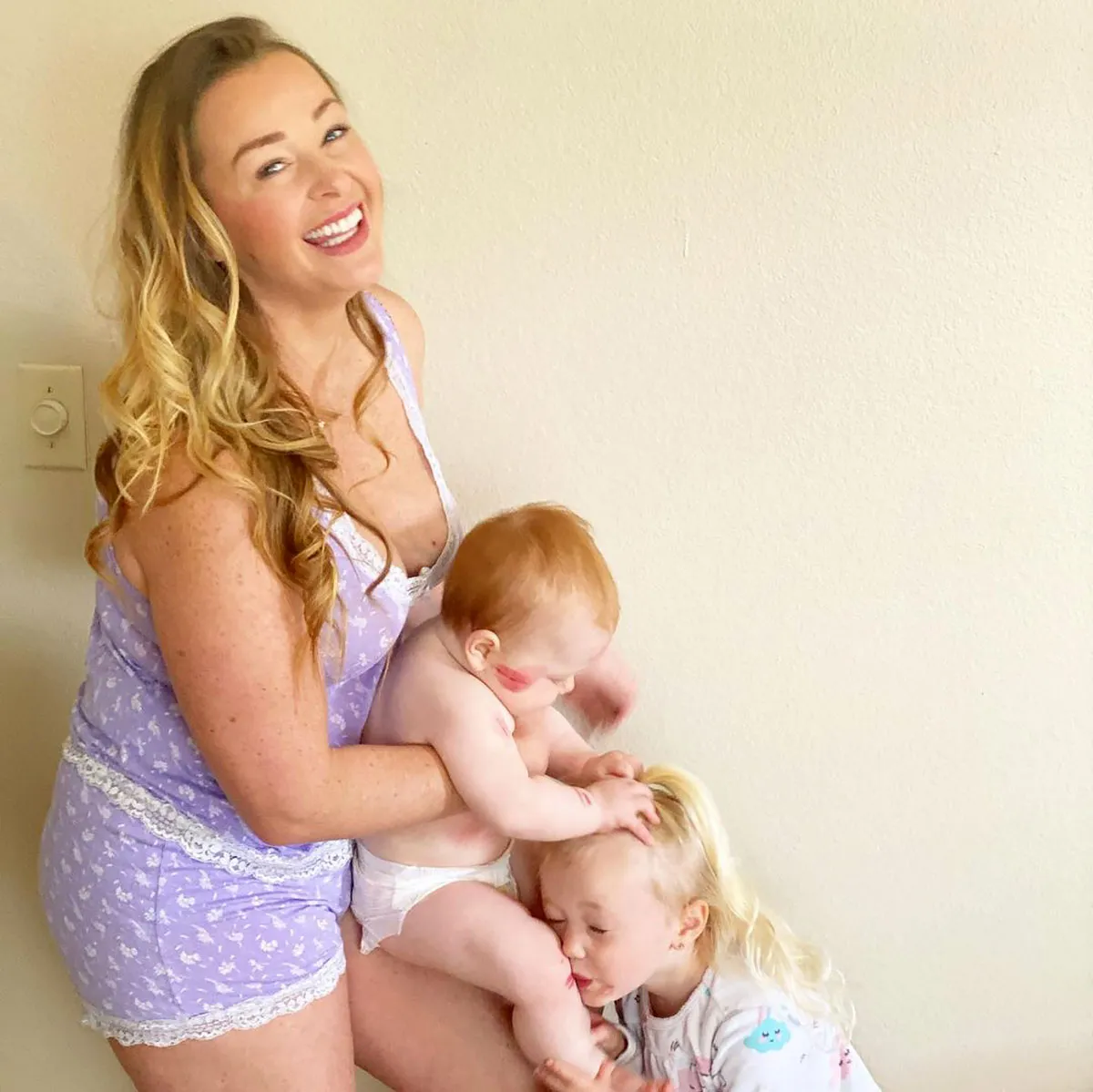 In the social media upload, the former reality star and her little ones all matched in “I [Love] Me” tees. The Texas native held both of them on either hip.