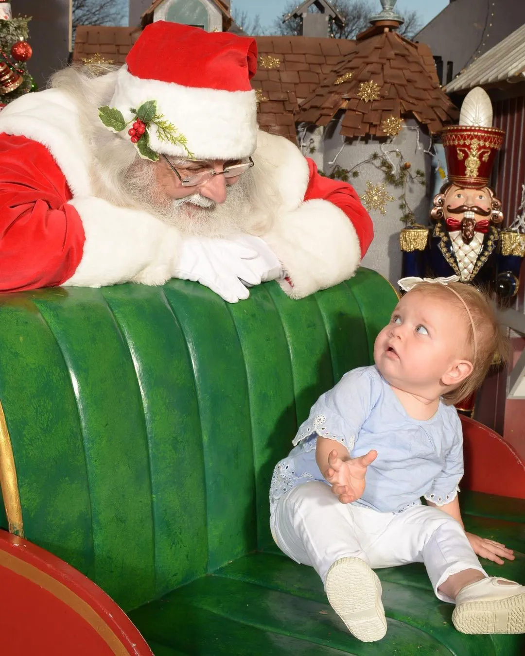 Sean Lowe shared a silly shot of his and Catherine Giudici’s youngest child, Mia, via Instagram on December 14. The 12-month-old sat on a green couch with a frightened look on her face as Saint Nick smiled over her shoulder.