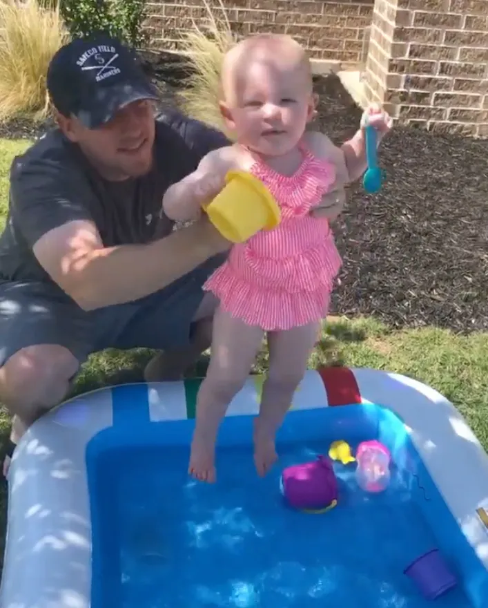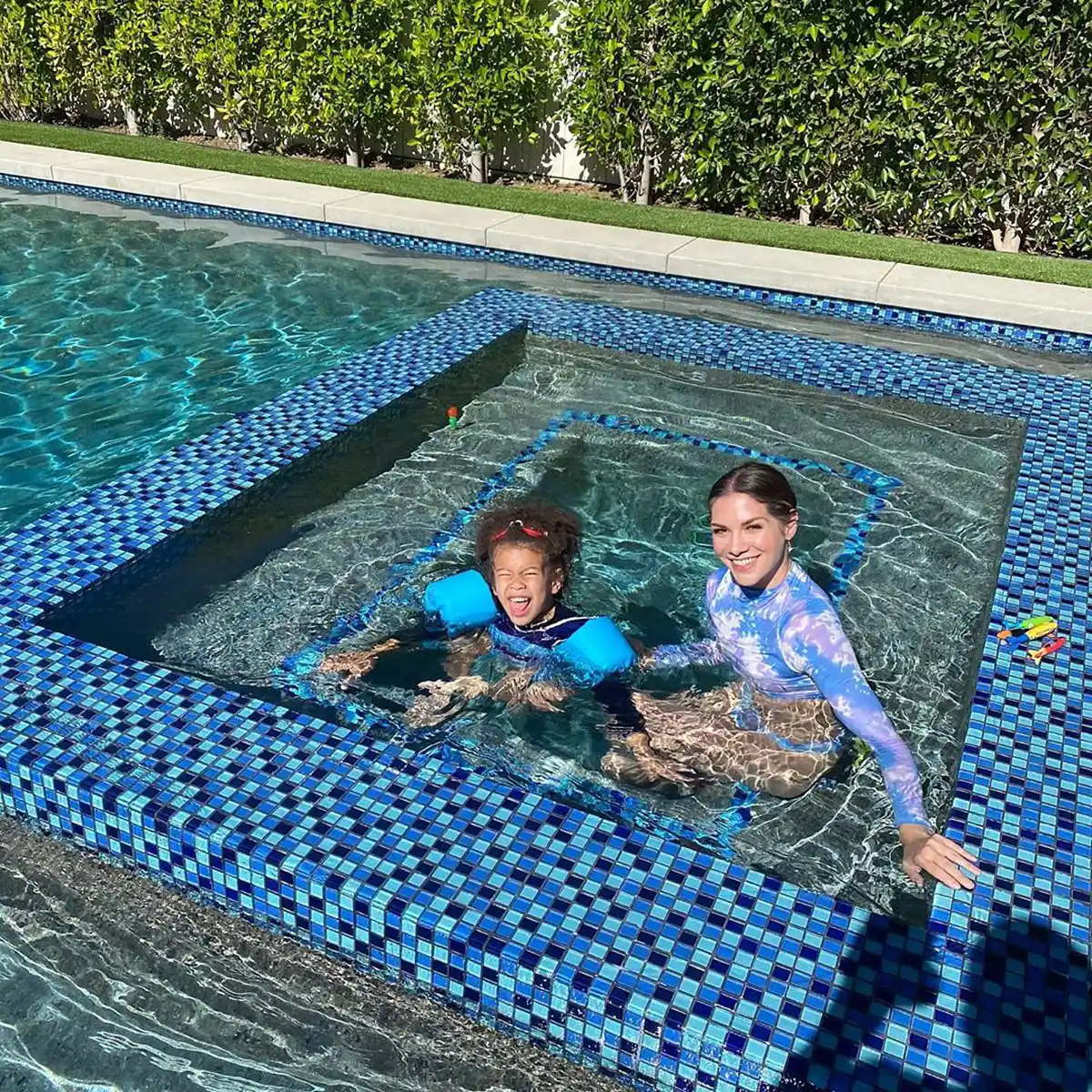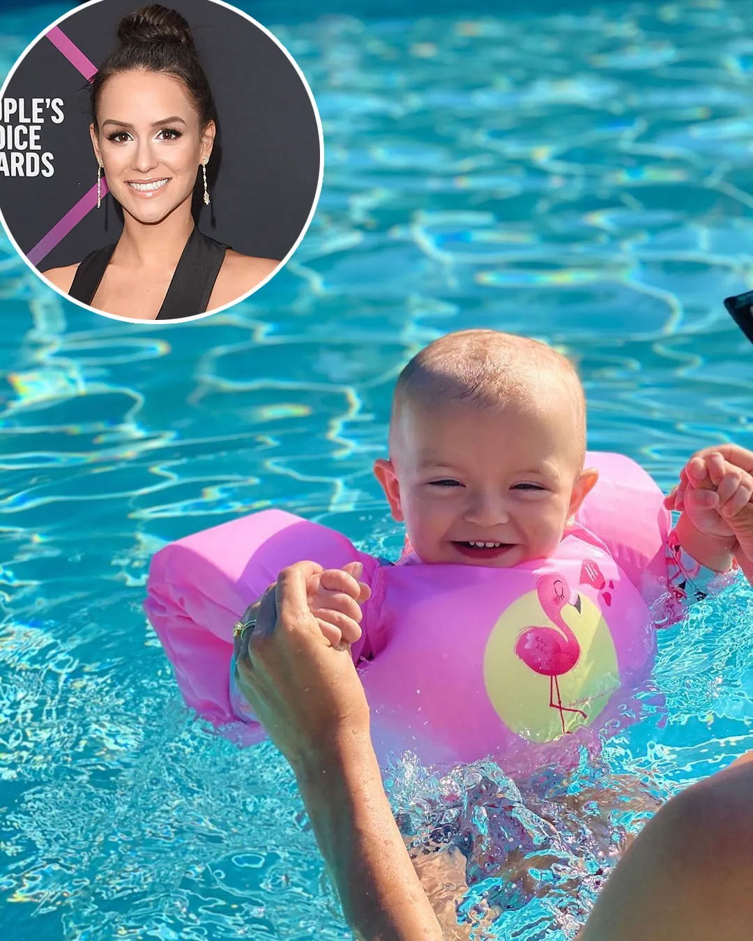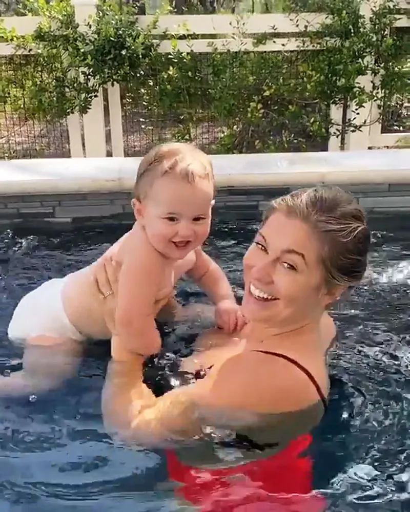 Keep scrolling to see more celebrity parents showing off their children’s swimming skills, from Lauren Burnham dangling her and Arie Luyendyk Jr.’s daughter Alessi’s feet into the water to Ali Fedotowsky being body positive in the pool with her and Kevin Manno’s daughter, Molly.