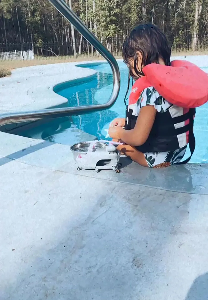 Kylie Jenner and Travis Scott’s daughter, Stormi, has also been getting her swim on this summer. The Kylie Cosmetics creator posted Instagram Story videos of the toddler swimming in a blue one-piece bathing suit without wearing floaties.