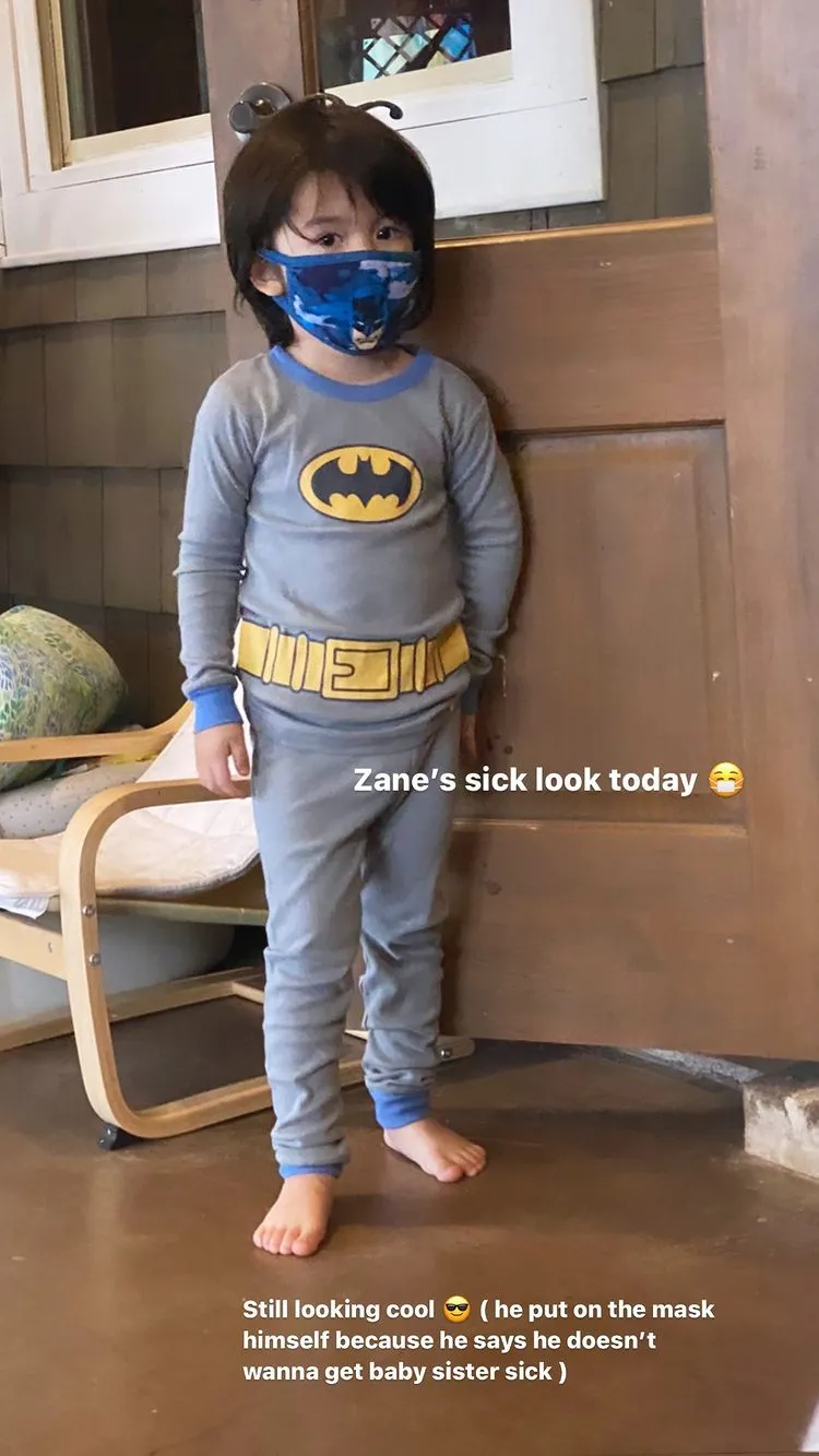 In the social media upload, the actress, who is also the mother of Osian, 5 months, flashed a peace sign. She and her eldest two children smiled from behind their colorful face coverings.