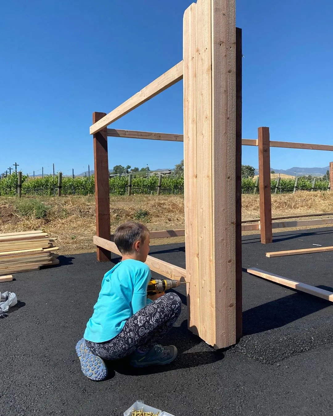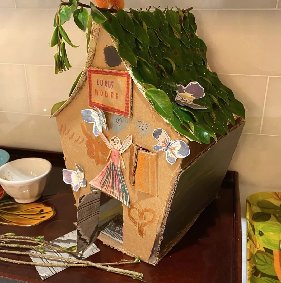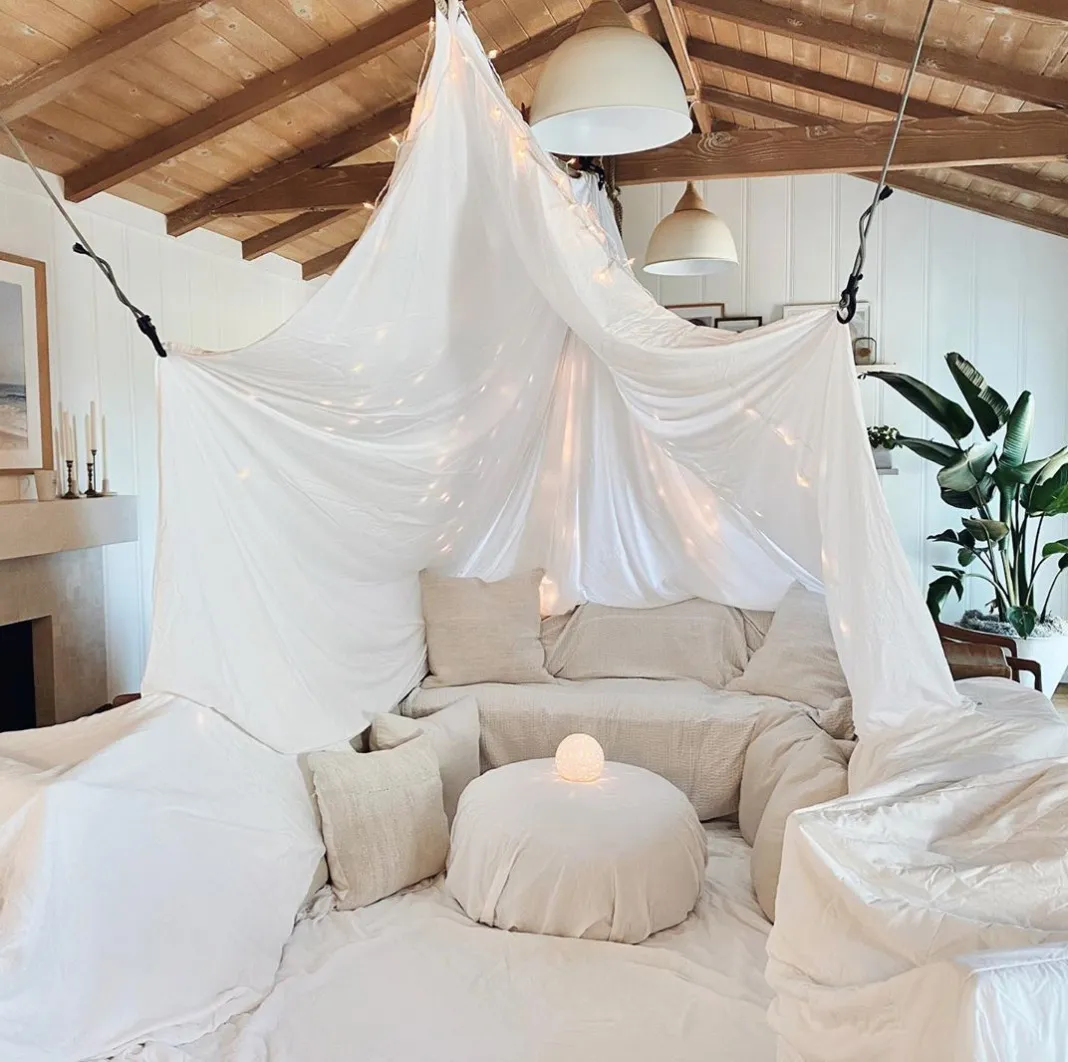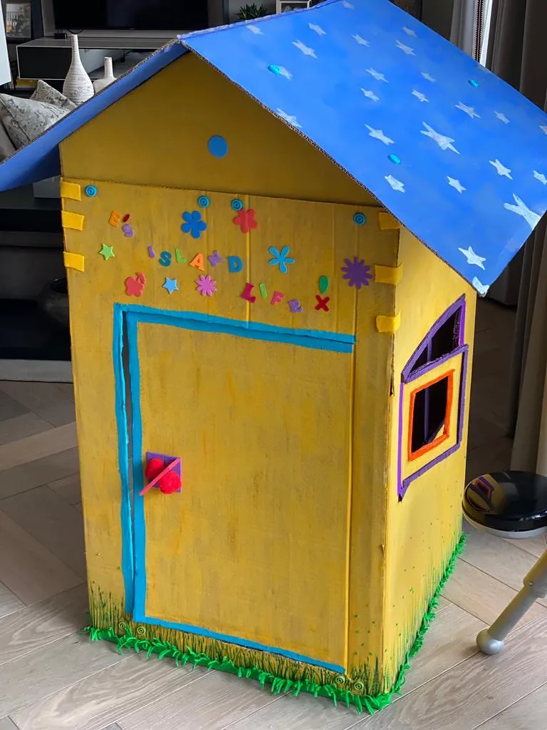 The blogger went on to write, “Only a few days in and we are quickly running out of activities. Today we challenged some friends to a fort building contest.”