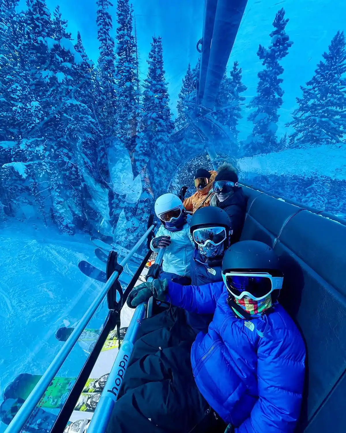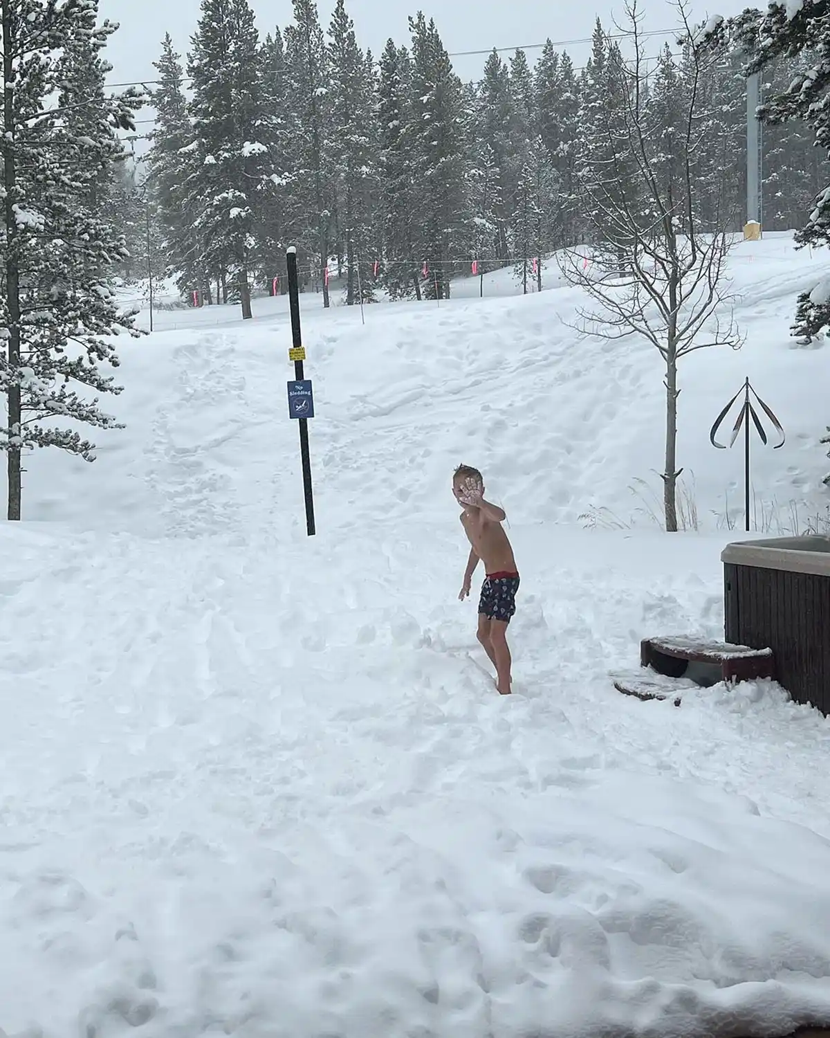 The group’s whirlwind trip featured skiing with the kids’ grandpa, smiling on the snow lift, kisses with Saylor on the slopes and going in the hot tub, which was surrounded by fresh powder.