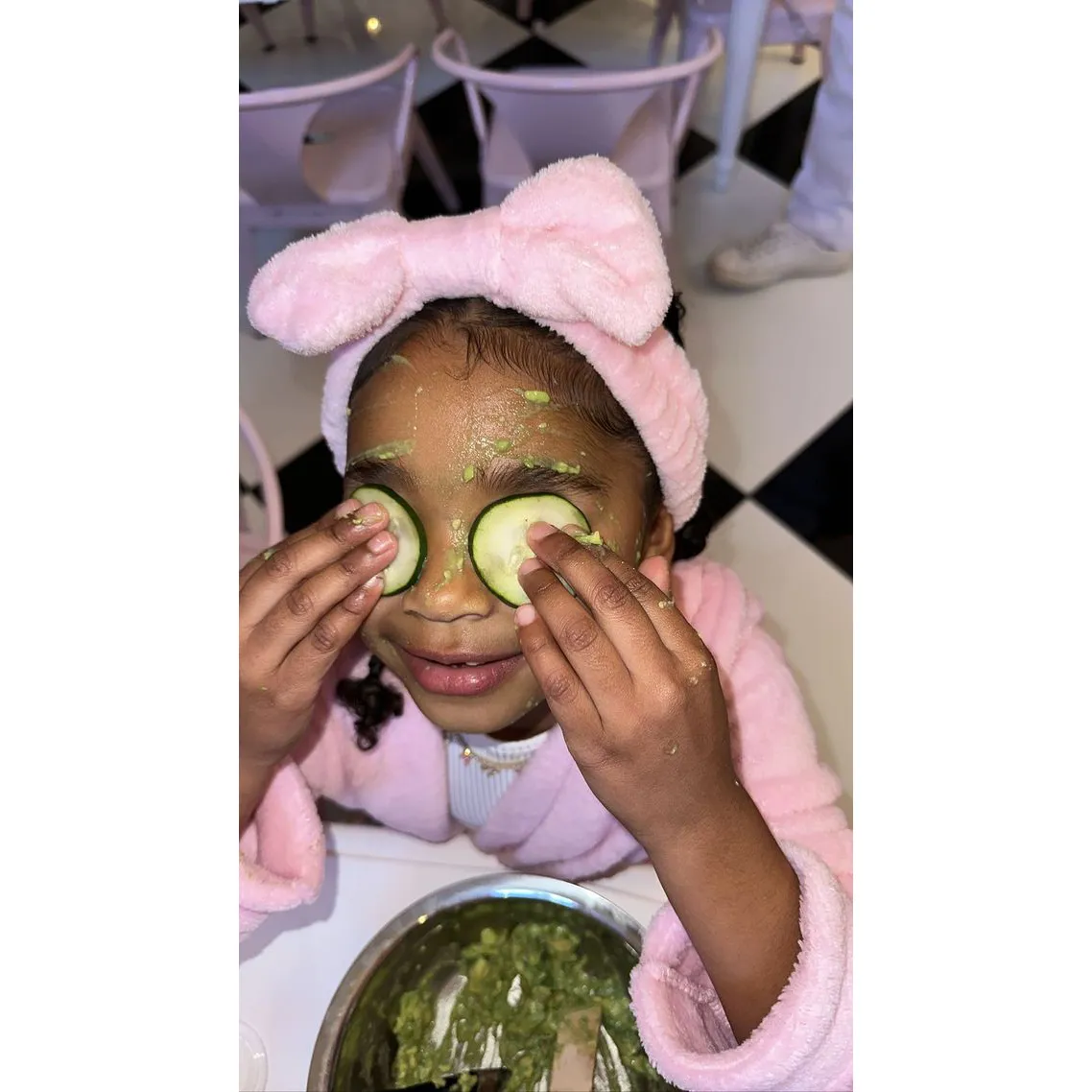 The girls even got to create their own beauty products. “I’m making lip gloss,” Chicago, 5, quipped to Khloé, 39, before True, 5, chimed in that she was making her own lipstick.