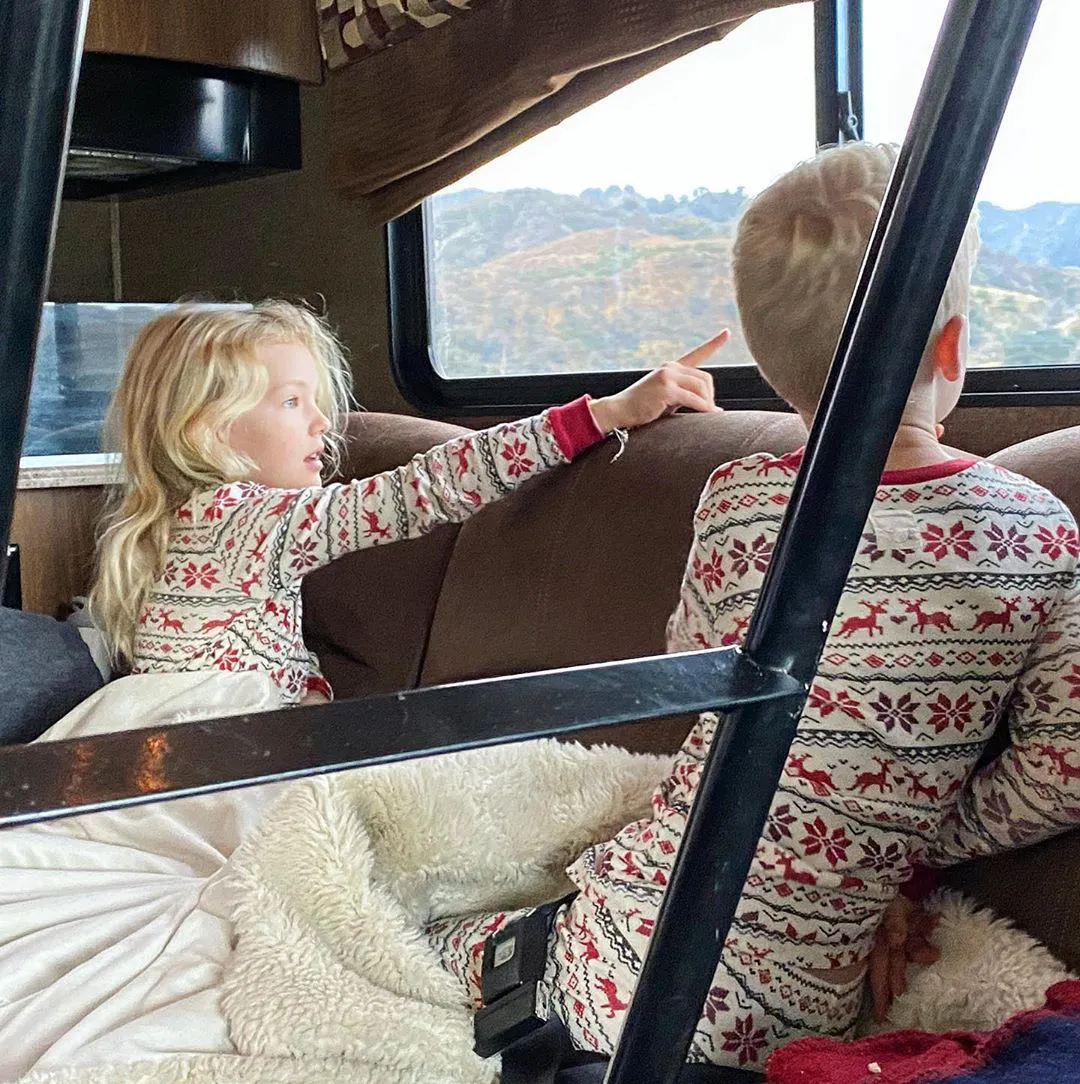 “Day two of our RV Christmas trip!” Kimberly wrote alongside a series of sweet shots. “Today, grounding on the river bedrock, watching the kids play, having @vanderjames family visit our campsite, getting a nap in the back of our RV With Gwen, fed the soul so hard. Got the bliss I asked for.”