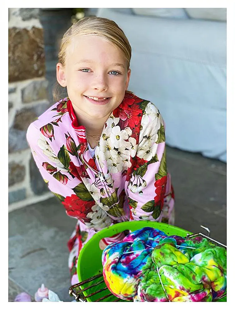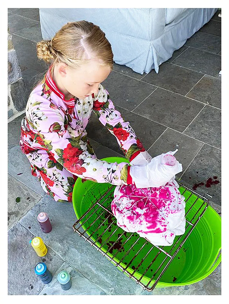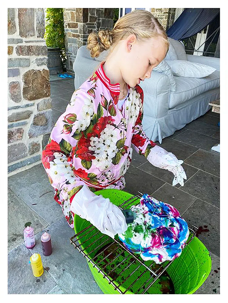 Scroll down to see photos of Maxwell tie-dying a sweatshirt for her mom!