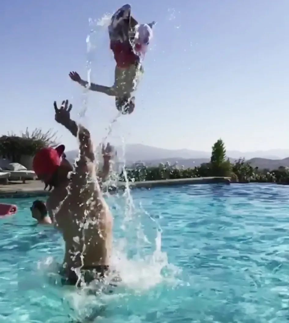 Darling daredevils! Jessica Simpson and Eric Johnson’s three kids love playing in the pool with their dad.