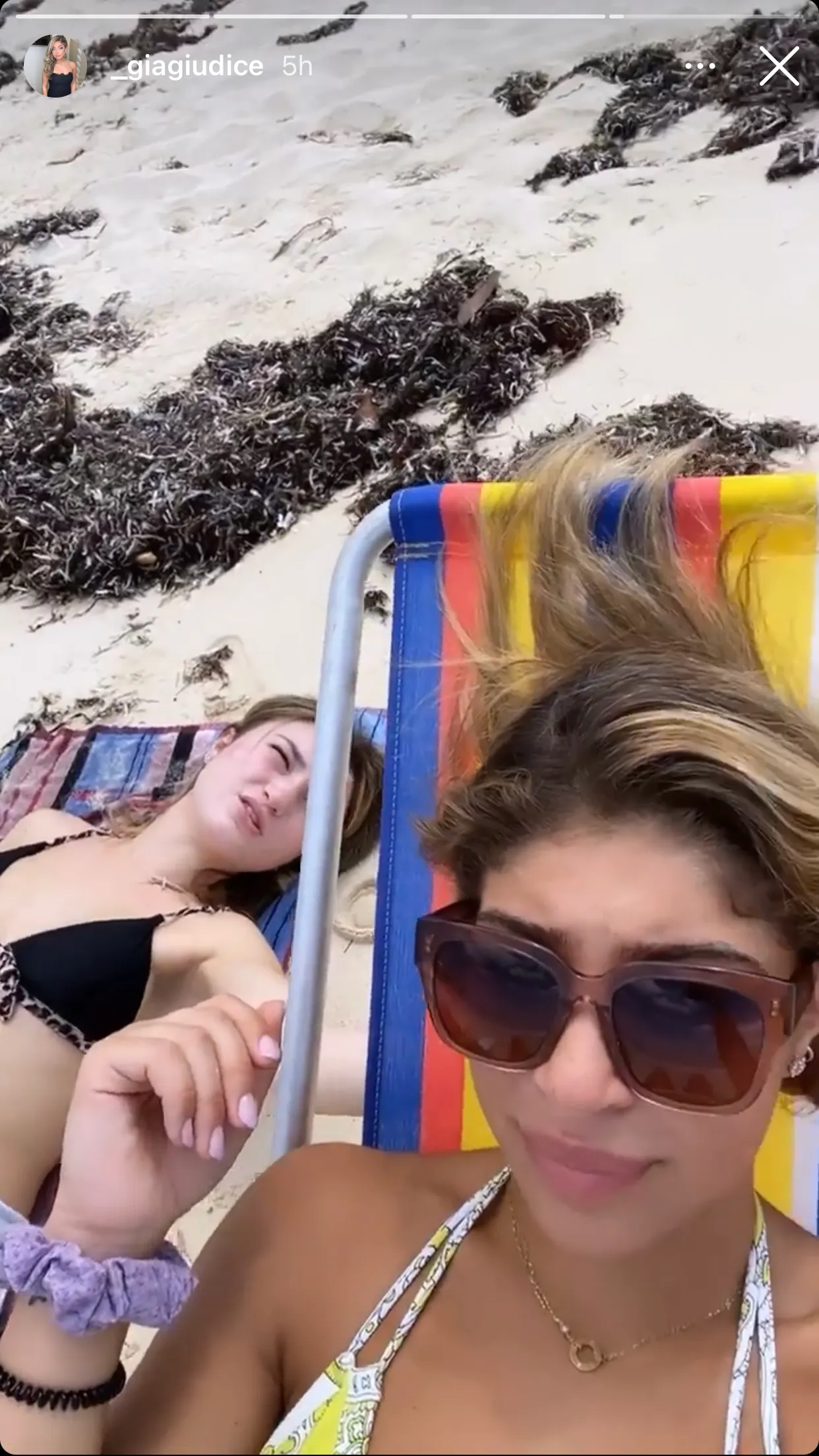 Gia shared a video on her Instagram Stories on Sunday that showed all four sisters, including Gabriella, 16, soaking up the sun on the beach in Nassau.