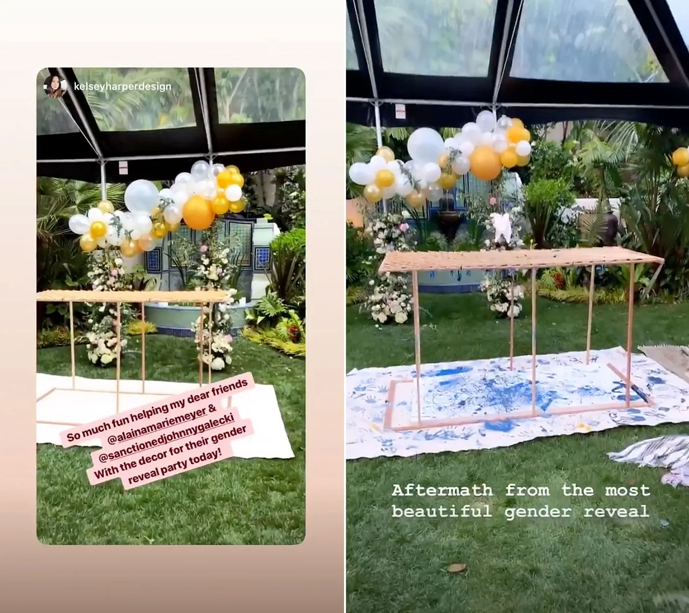 For the decor, the soon-to-be parents went with flowers, greenery and white and yellow balloons that made for a scenic outdoor space to do the big reveal. Galecki and Meyer couldn’t keep their hands off each other at the celebration.
