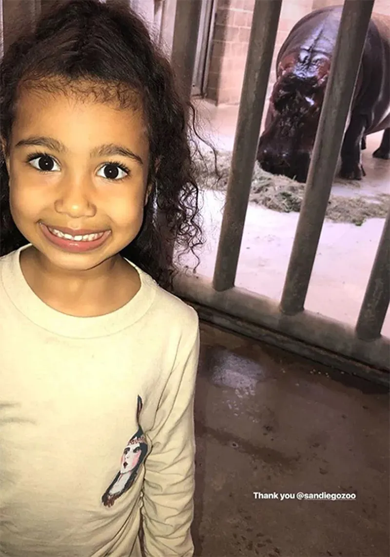 The 37-year-old reality star documented their day out in a series of Instagram Stories, including an adorable pic of her husband with their son, Saint, 2, and multiple photos of daughter, North, 4, having a blast feeding animals. Kardashian even handed her camera over to capture a sweet moment with North while they gazed at the penguins.