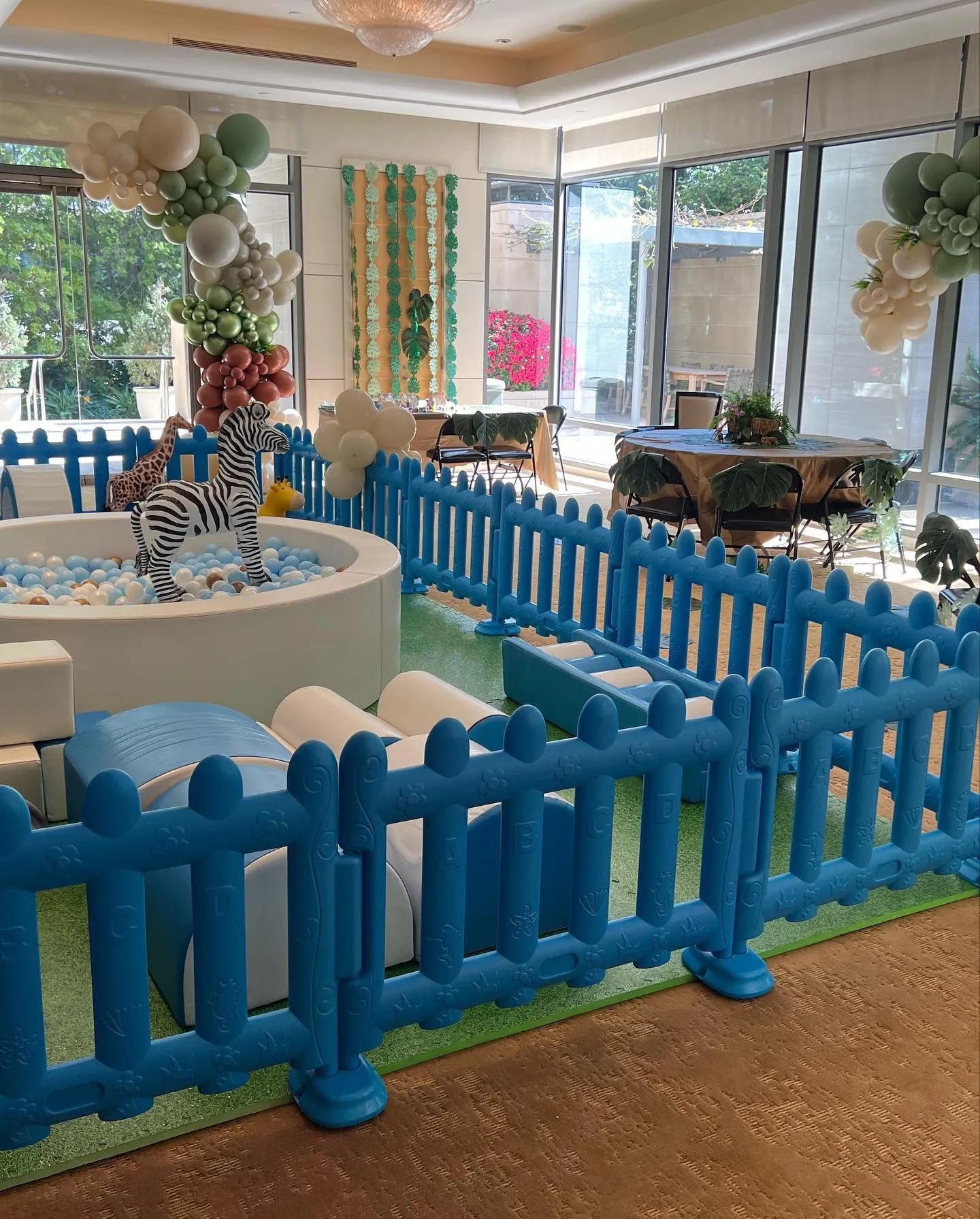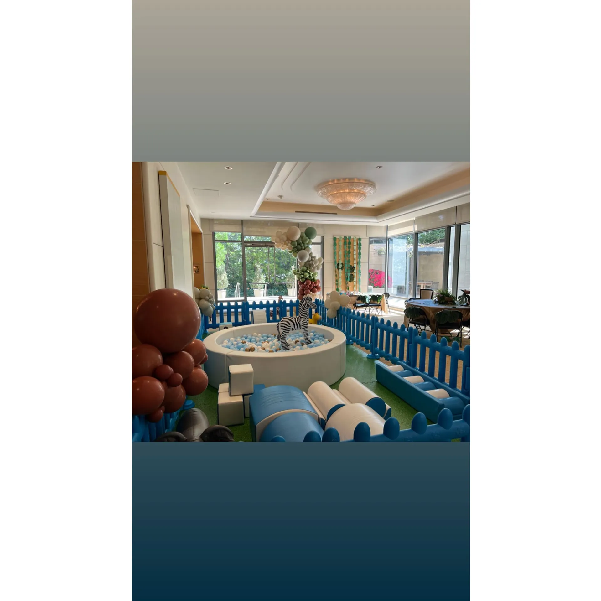 While the singer did not share a photo of her and the 72-year-old producer’s baby boy, she showed the animal-themed party’s balloon arches and ball pit. The Los Angeles native also gave a glimpse of the little one’s blue cake, which featured yellow frosting and zoo animals.