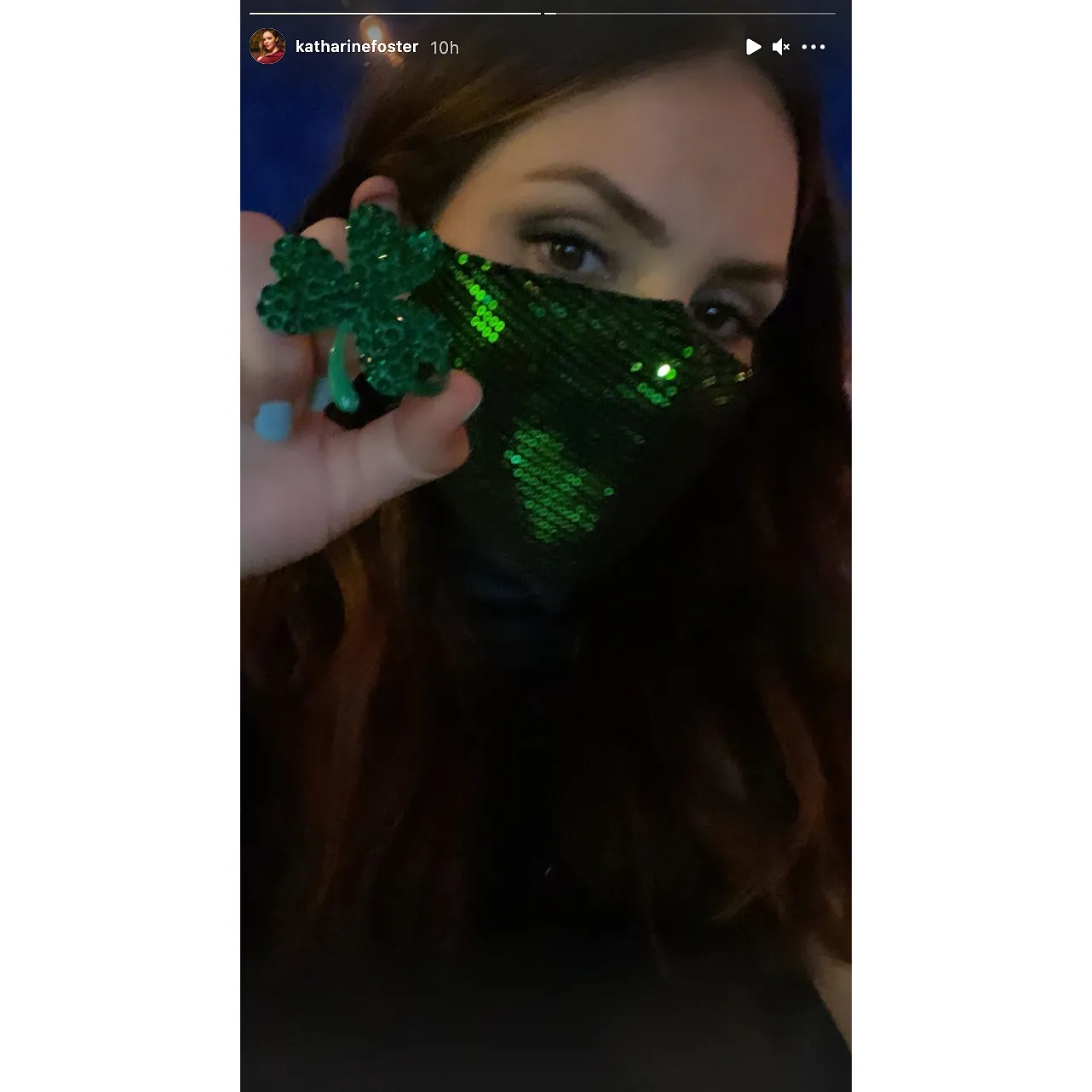 The Country Comfort star, 36, captioned the social media upload with a four-leaf clover emoji. In the backyard shot, she posed in a green dress and matching sequined mask, as well as nude heels.