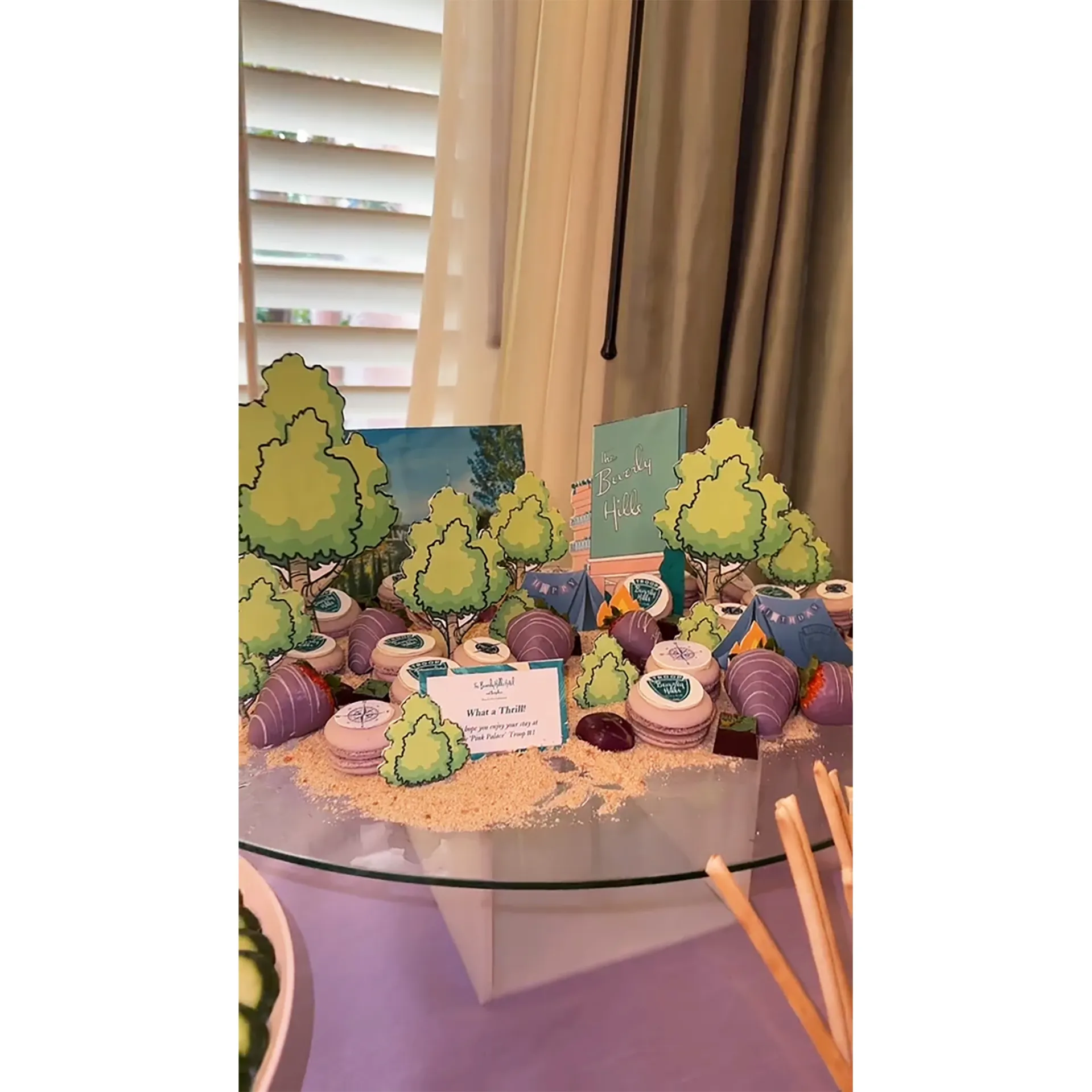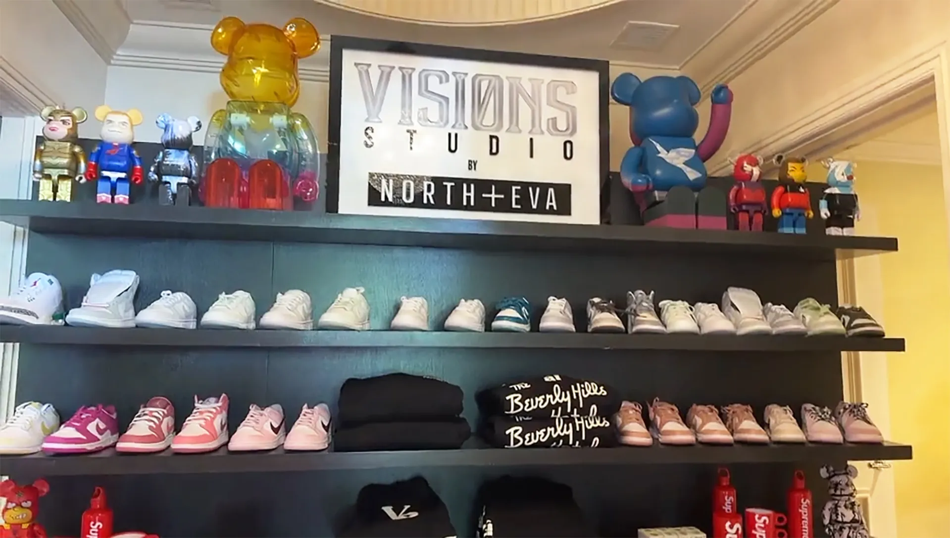 Kardashian set up a suite inside the legendary Beverly Hills Hotel as the party headquarters, featuring a “Vision Studio” wall of Nike sneakers, Supreme water bottles and blankets with the official hotel logo on the front. North and her besties also drank specialized Hello Kitty-themed drinks and snacked on platters of ornately decorated treats. The birthday girl — whom Kardashian shares with ex-husband Kanye West, along with sons Saint, 6, and Psalm, 4, and daughter Chicago, 5 — and her pals later changed into matching pink pajamas. They crawled into their twin beds, which had been set up as miniature purple tents with LED string lights.