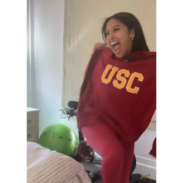 Natalia shared the news on her own account with a photo of herself flashing a peace sign while wearing a USC hat and matching shirt. “See you soon @uscedu,” she wrote. “Fight on!”
