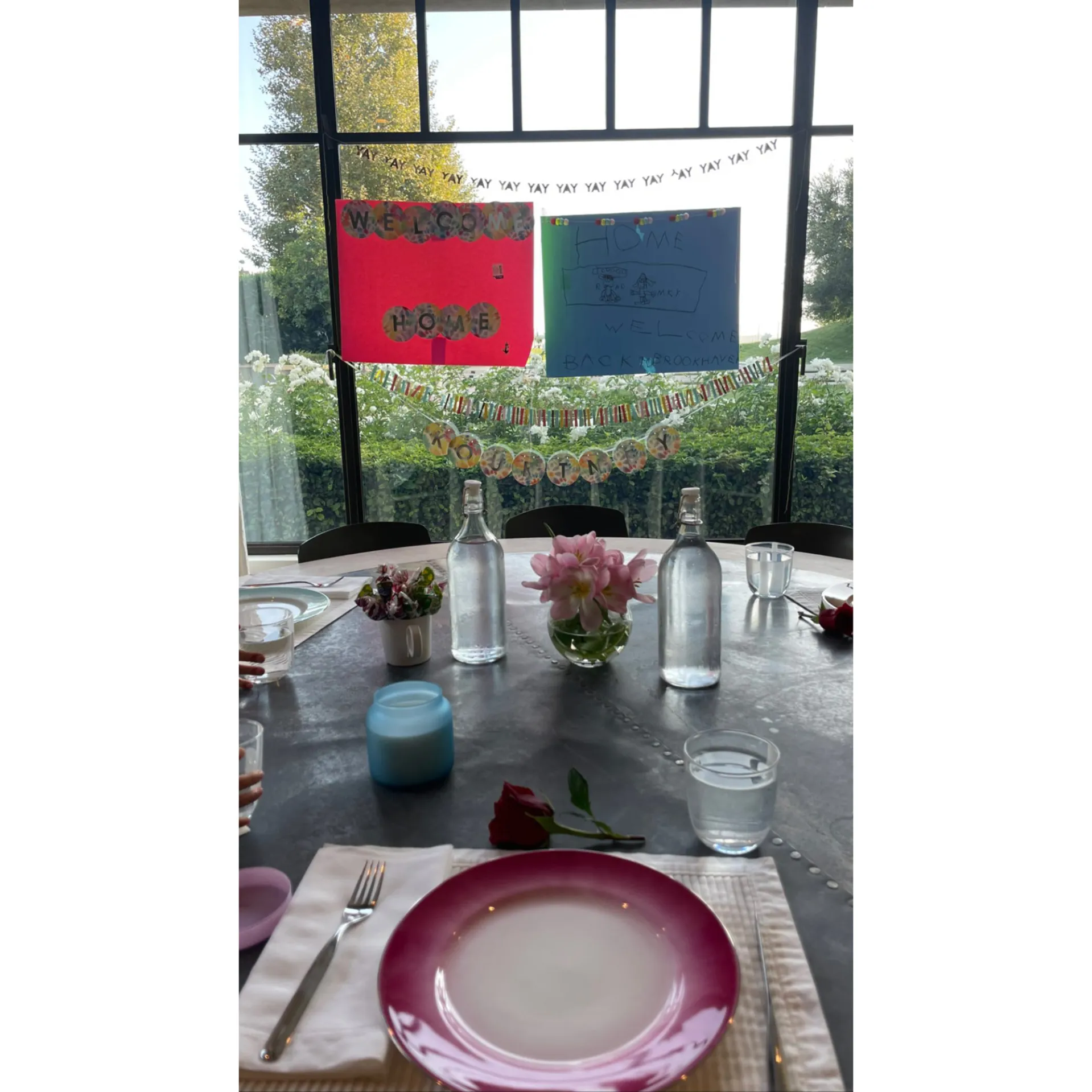 The Keeping Up With the Kardashians alum, 42, posted an Instagram Story video of her youngest two children — Penelope, 9, and Reign, 6 — cheering from a rose petal-covered driveway. The little ones then adorably ran to hug their mom as she exited her car.